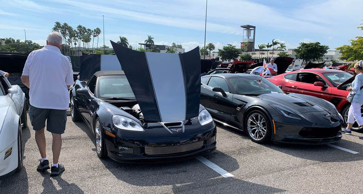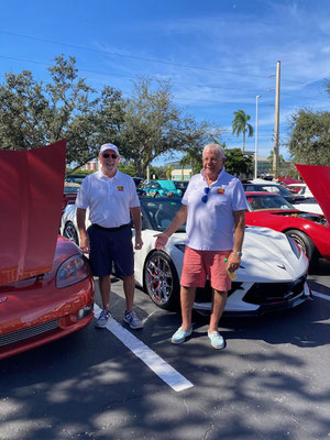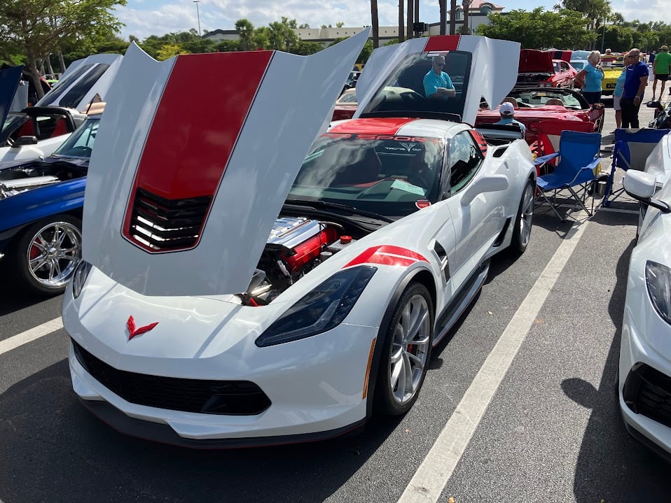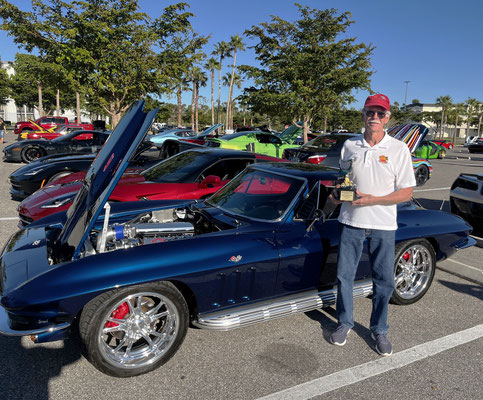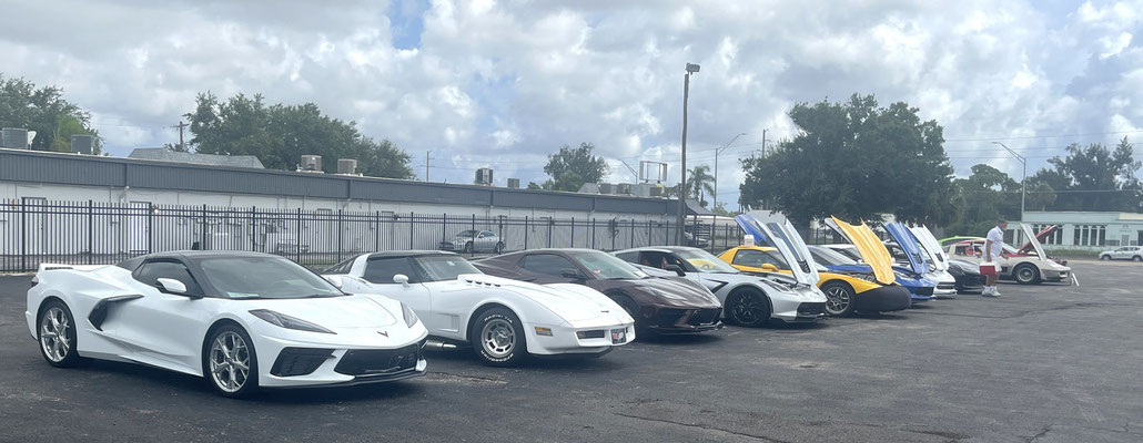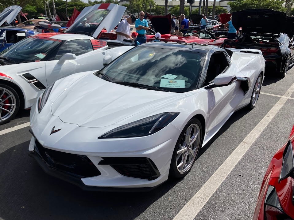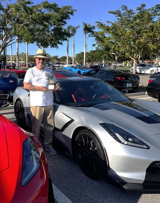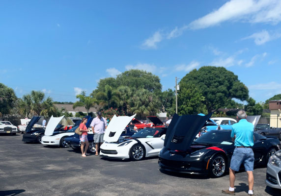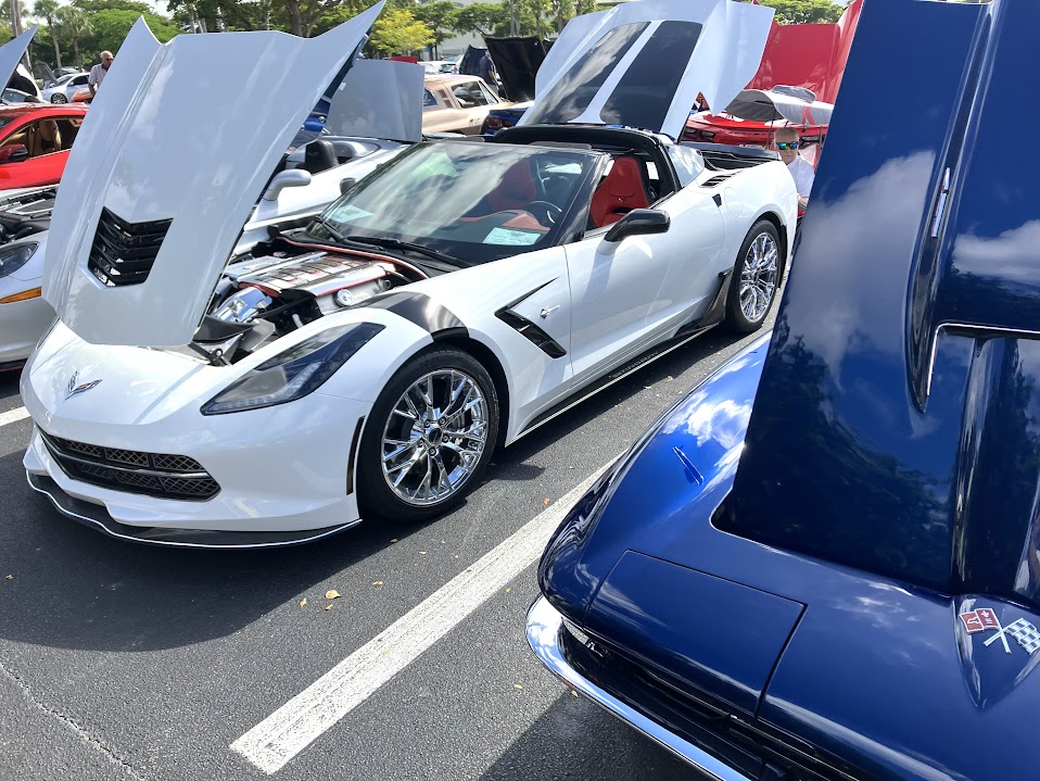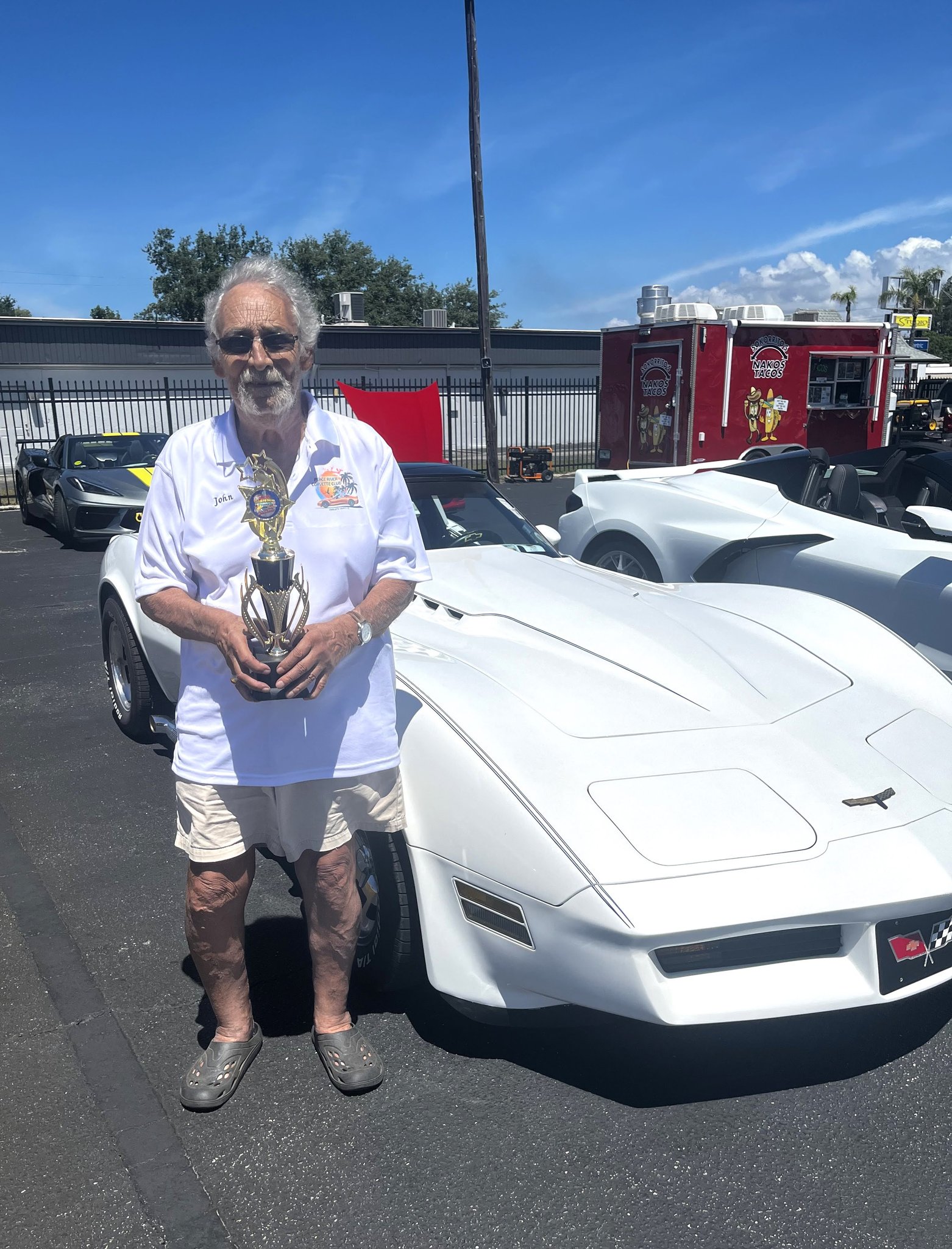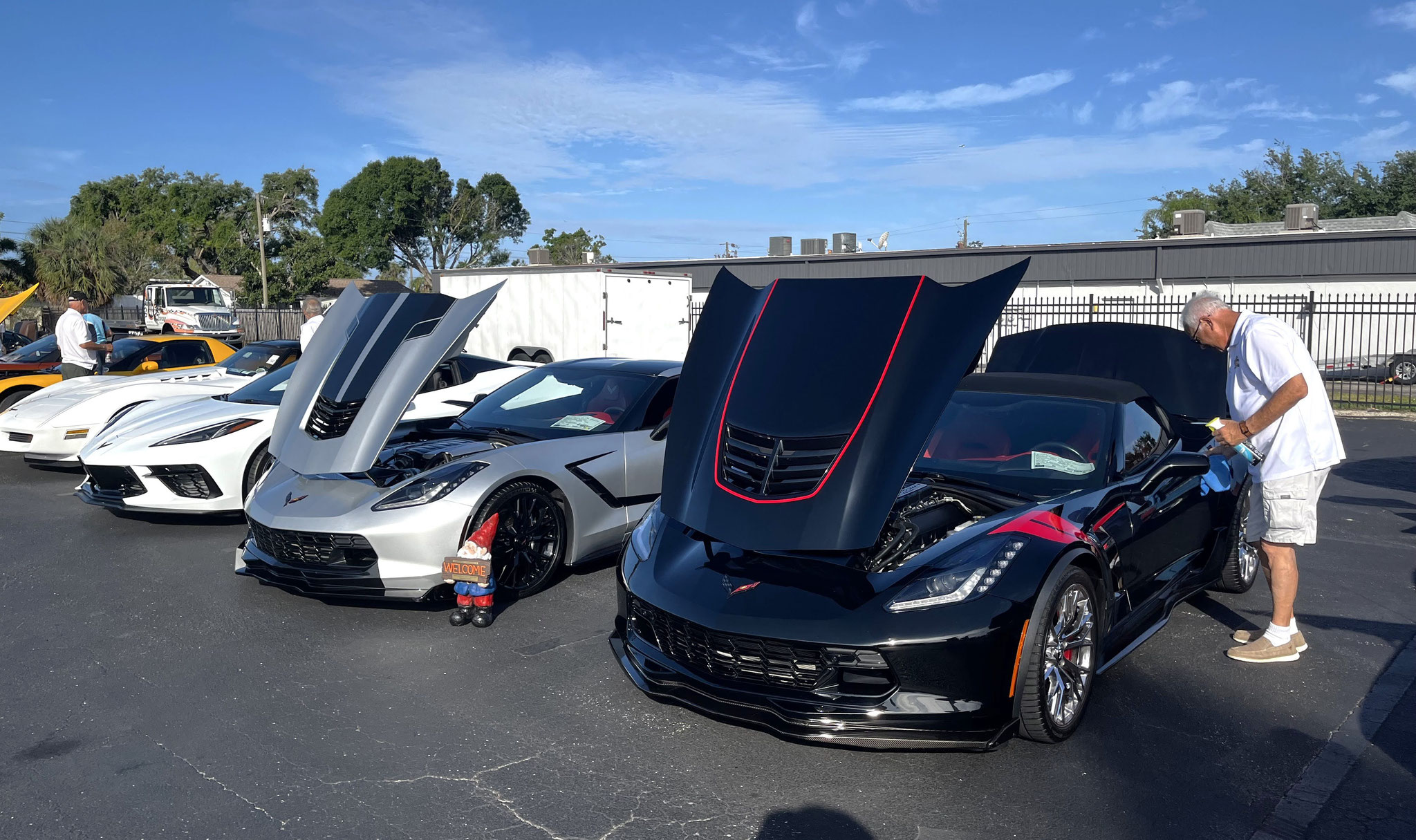 It was a typical HOT Florida morning on that parking lot. Once we completed the final “clean and shine” of our cars, we quickly moved to the shade against the building where there was a little breeze. At the end of the day, two PRCC member’s cars were awarded trophies. Today’s winners were Paul Remillard with his Black Mamba C8 Z06 and John Waiswilos with his beautiful white C3. Congratulations guys!!