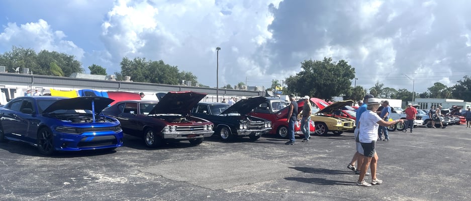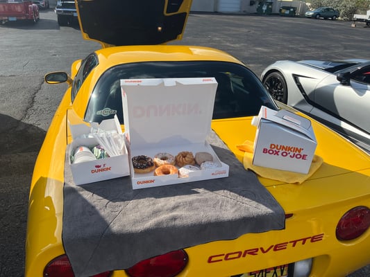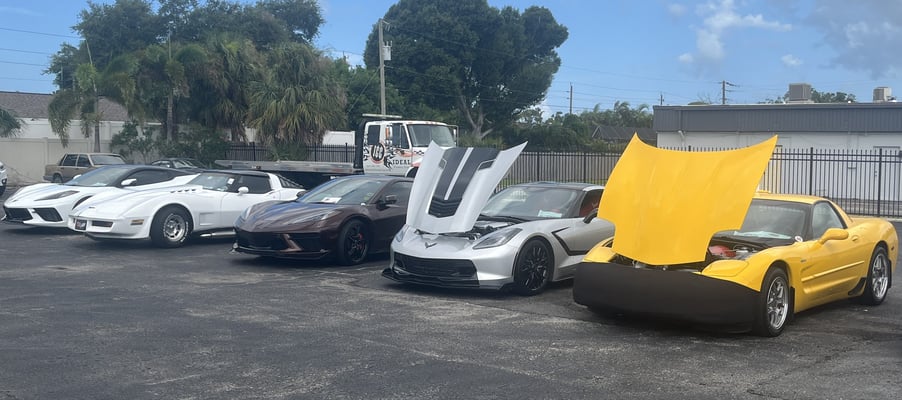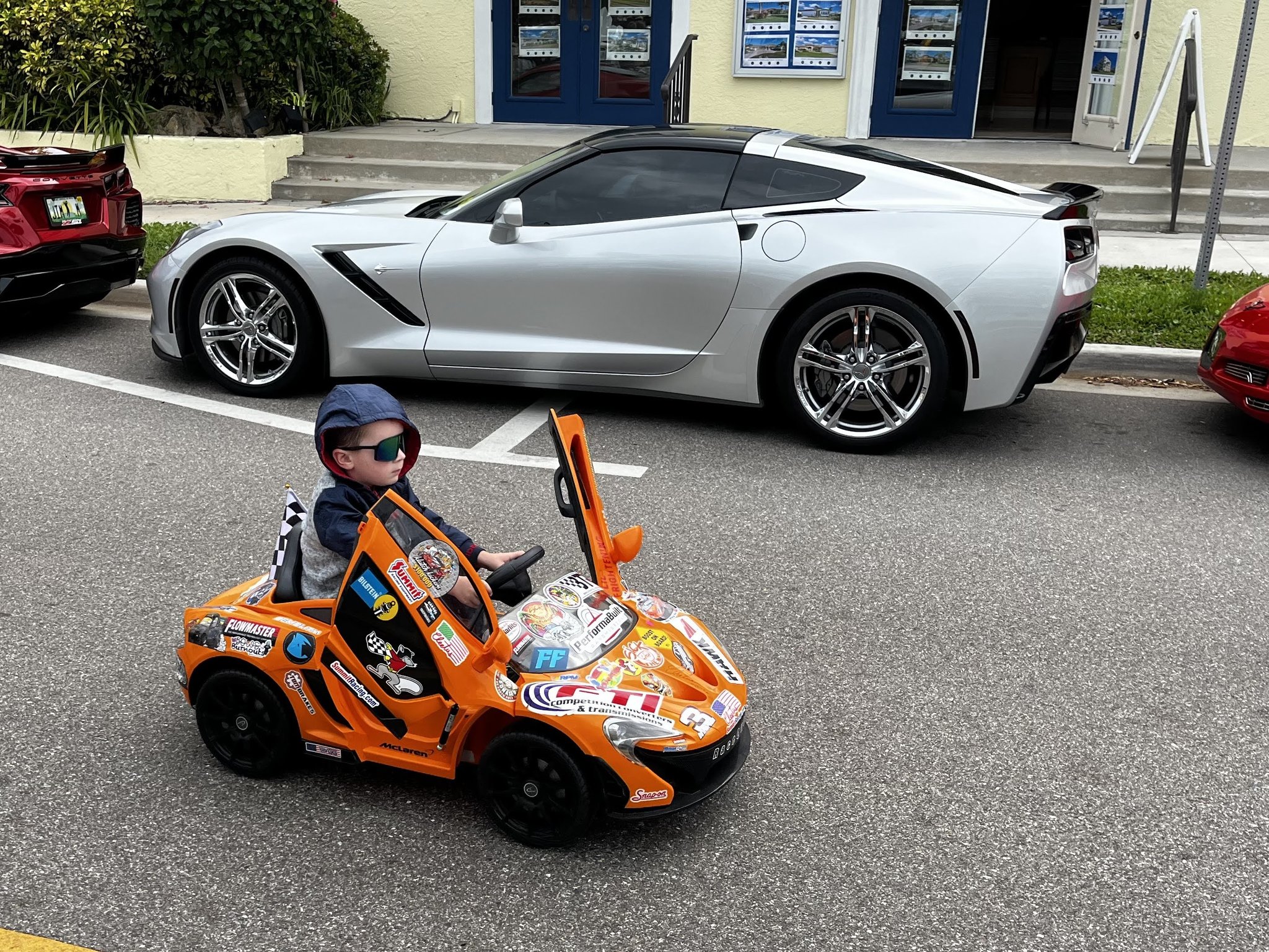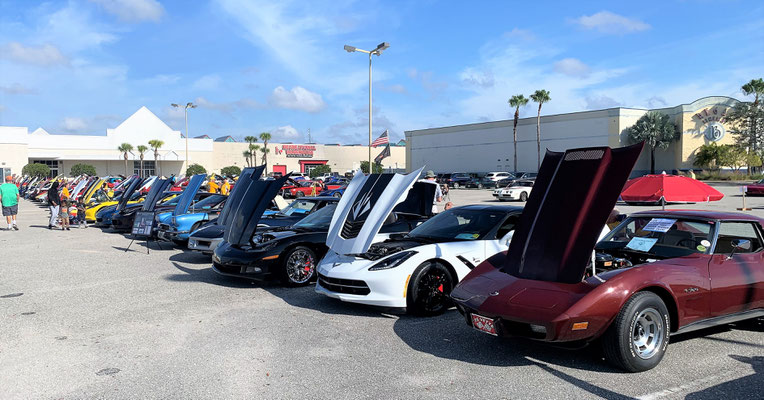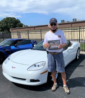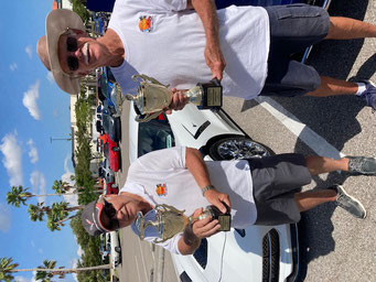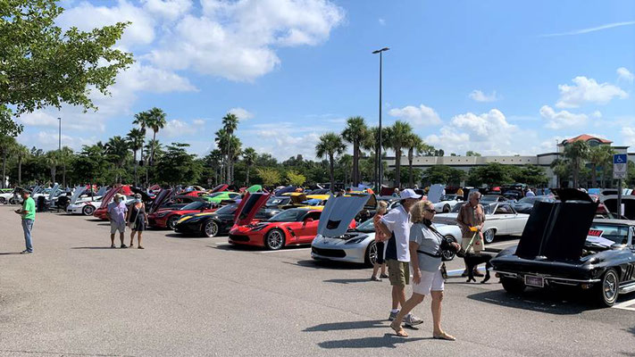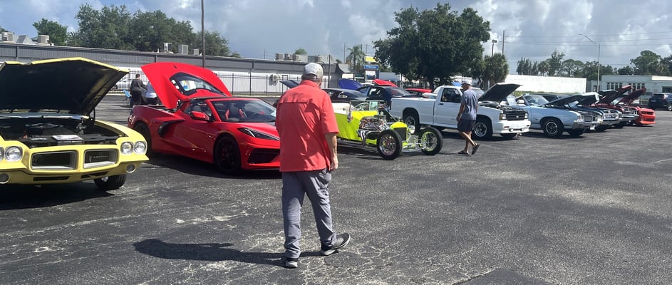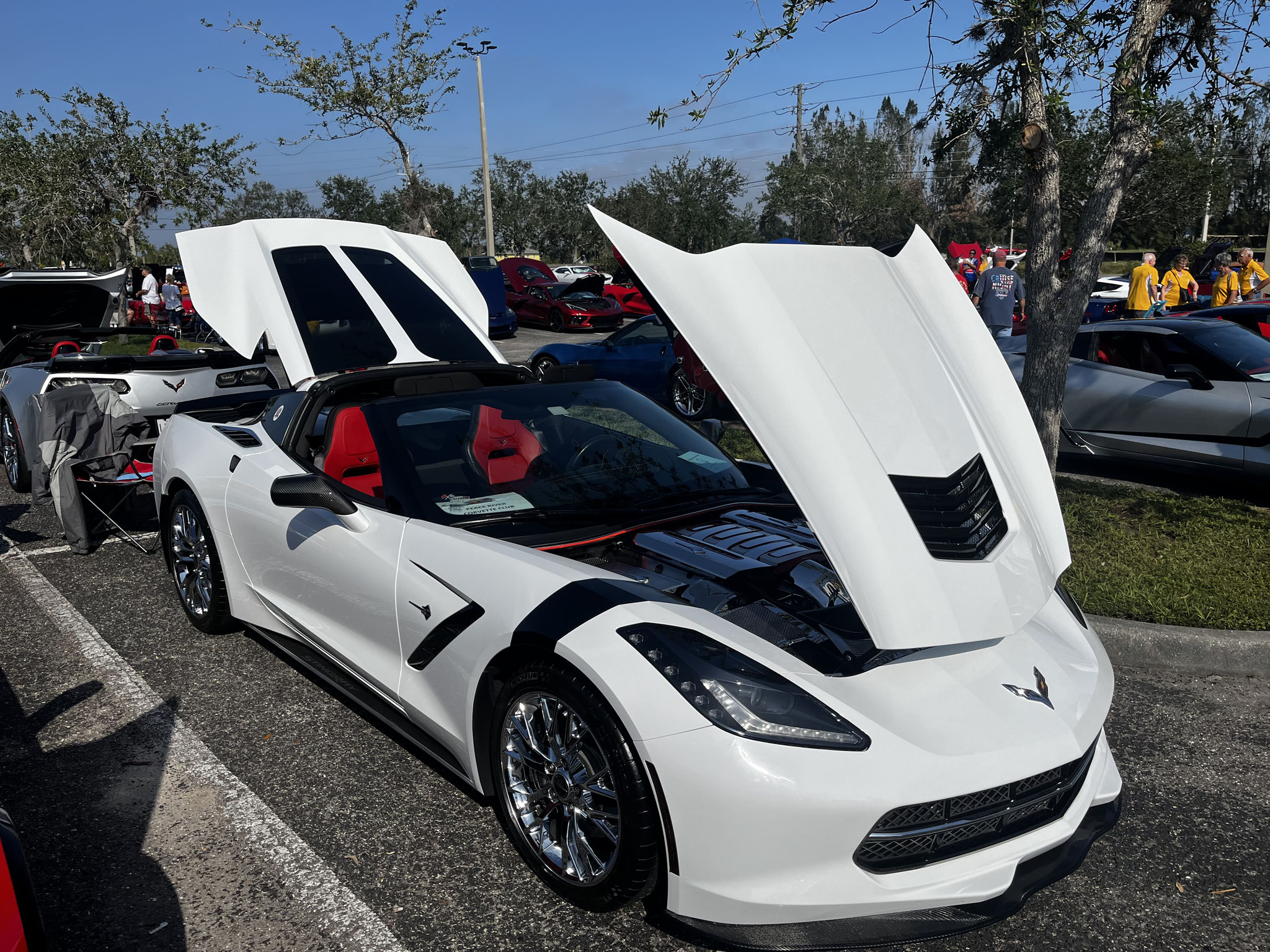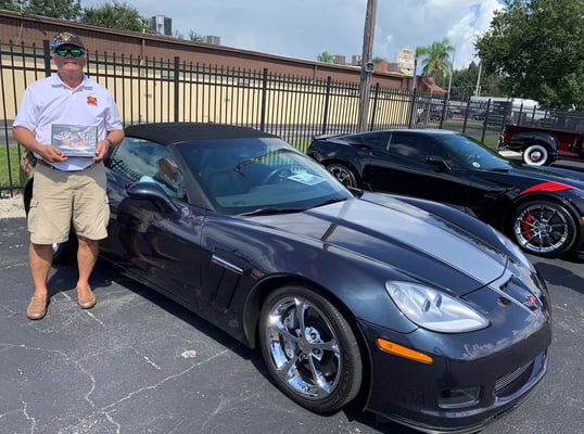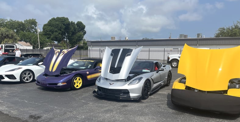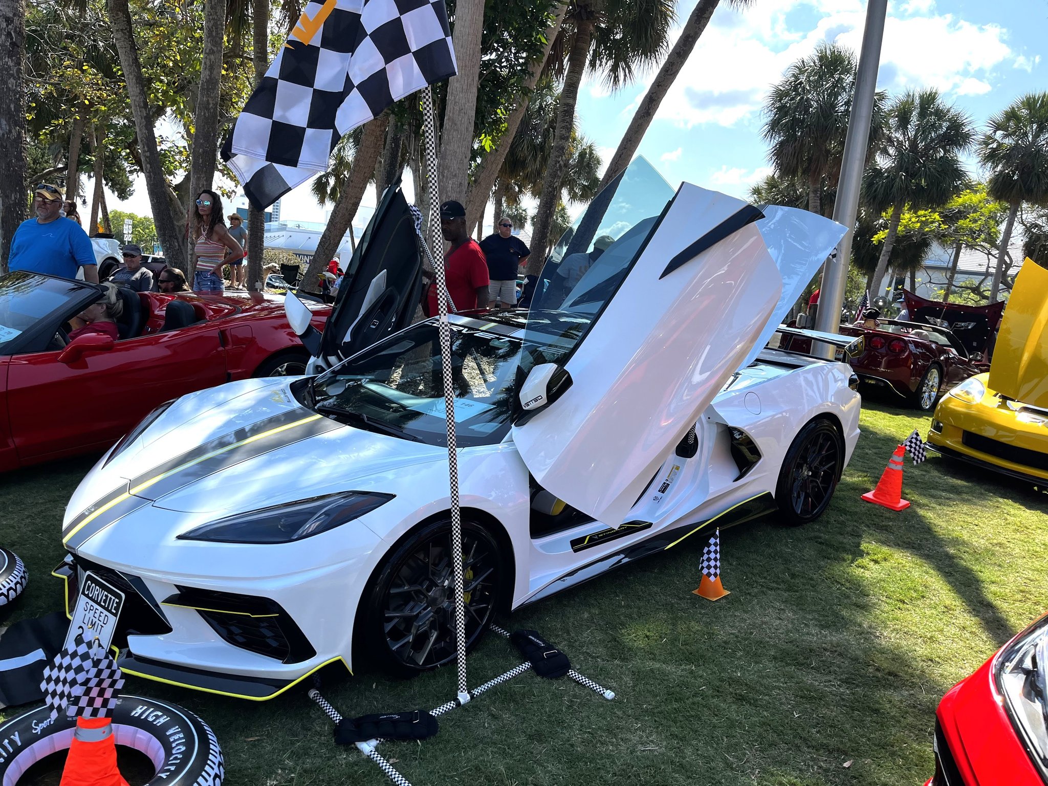It was a typical HOT Florida morning on that parking lot. Once we completed the final “clean and shine” of our cars, we quickly moved to the shade against the building where there was a little breeze. At the end of the day, two PRCC member’s cars were awarded trophies. Today’s winners were Paul Remillard with his Black Mamba C8 Z06 and John Waiswilos with his beautiful white C3. Congratulations guys!!