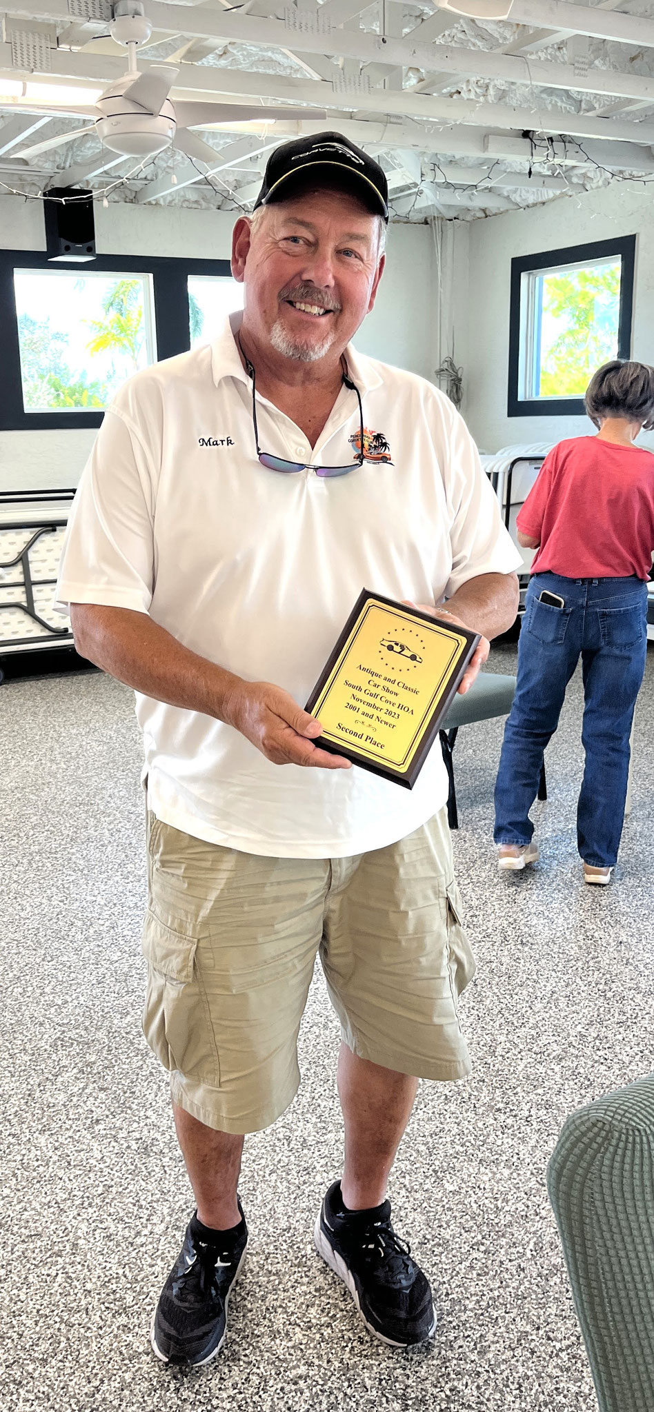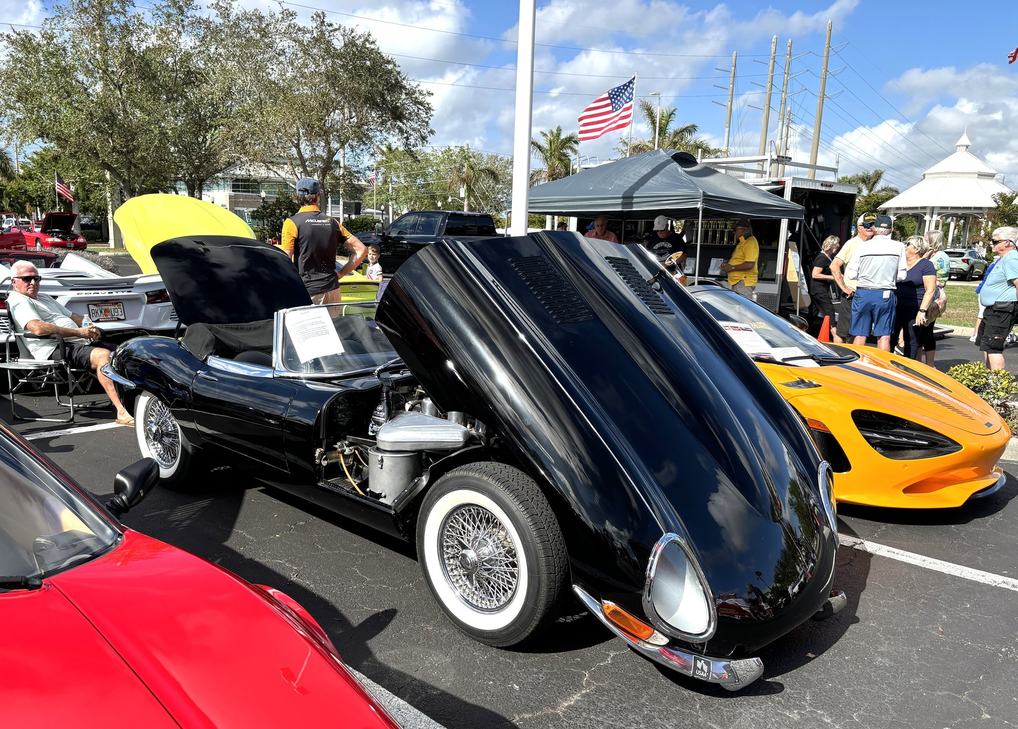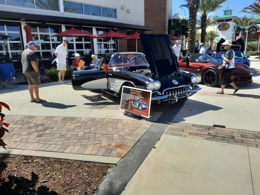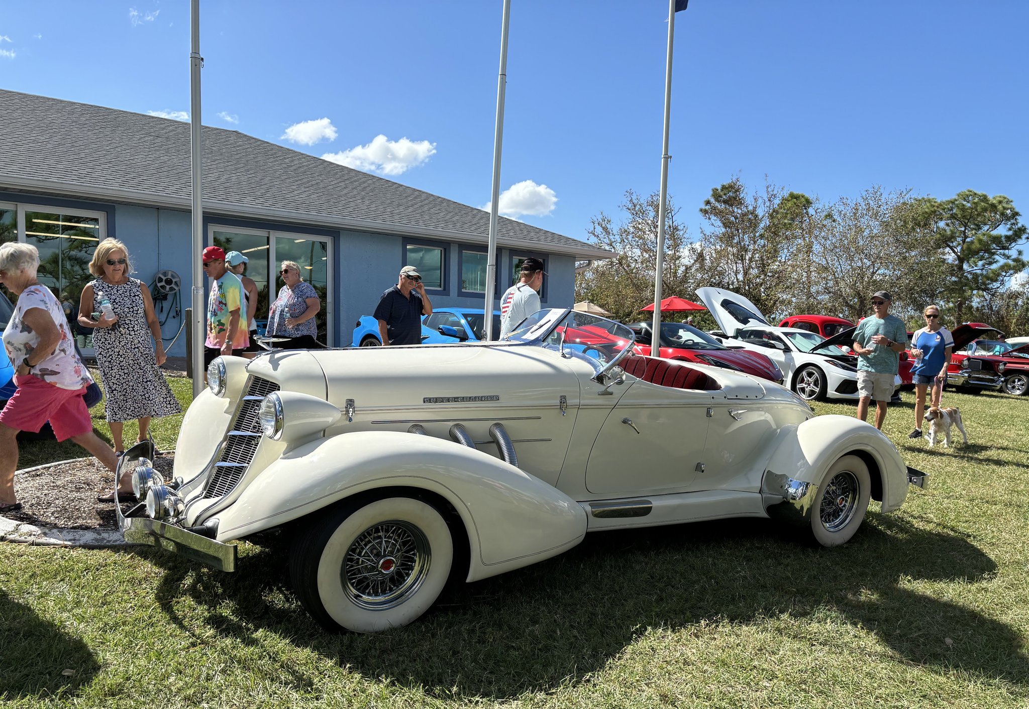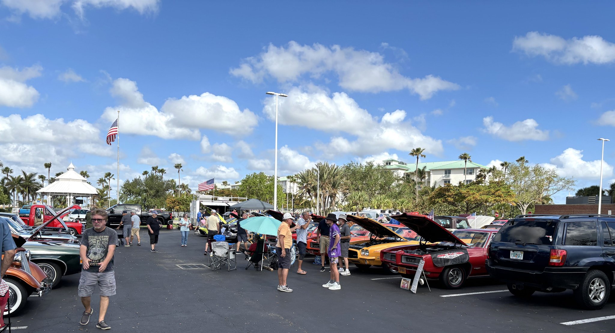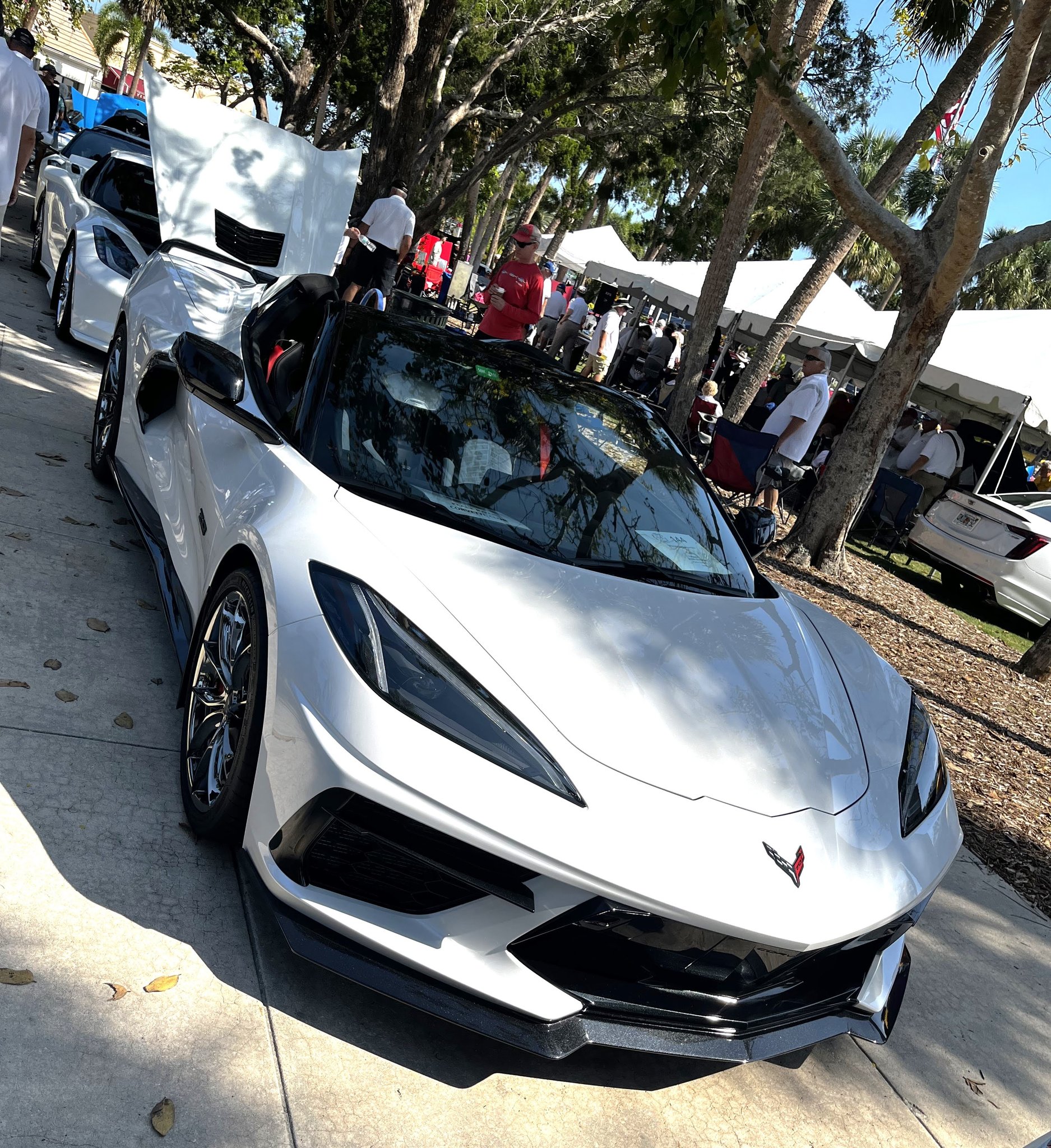 A bunch of us attended the South Gulf Cove Car Show hosted by our own Ed Kerschke and Elaine McNeill. It certainly was a gorgeous day for a car show. Many, many beautiful cars, old and new, which must have been tough for the judges. But… Mark and Gretchen Doran received a trophy for their beautiful 2023 Red Mist C8. Congratulations!!