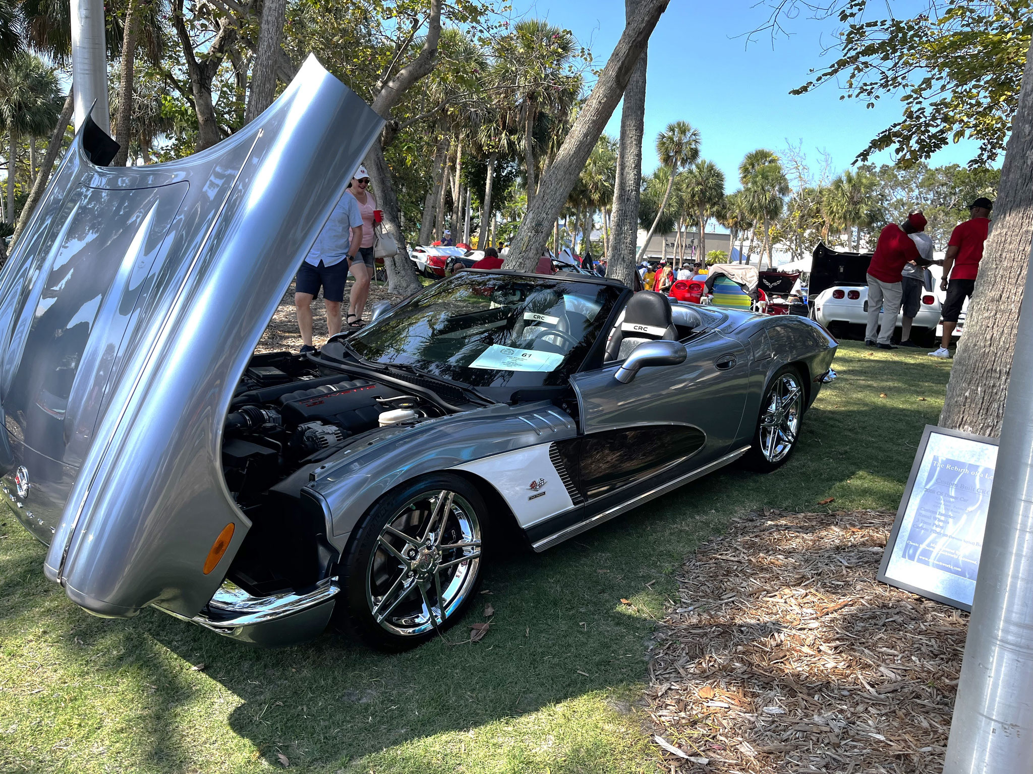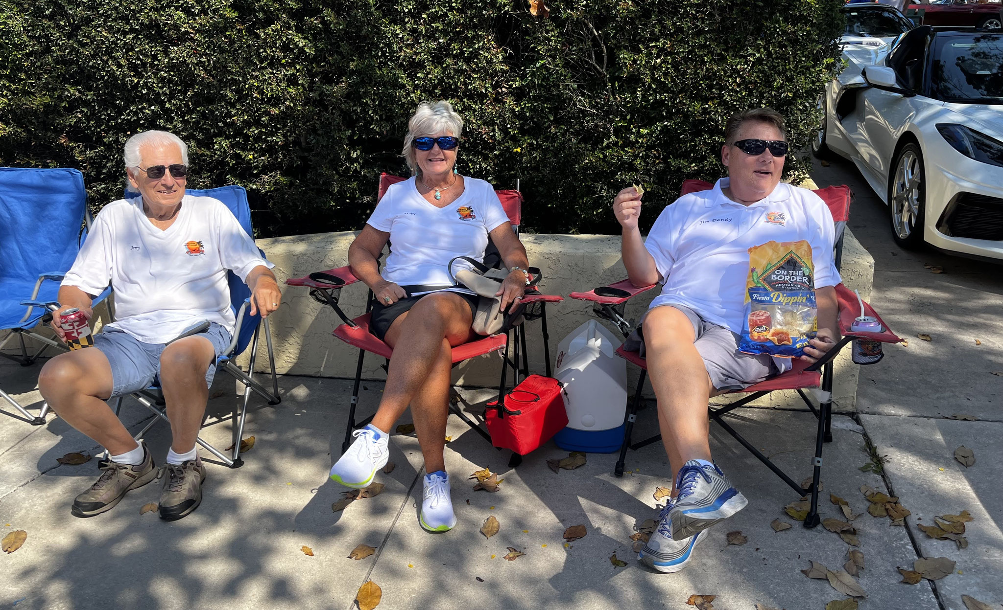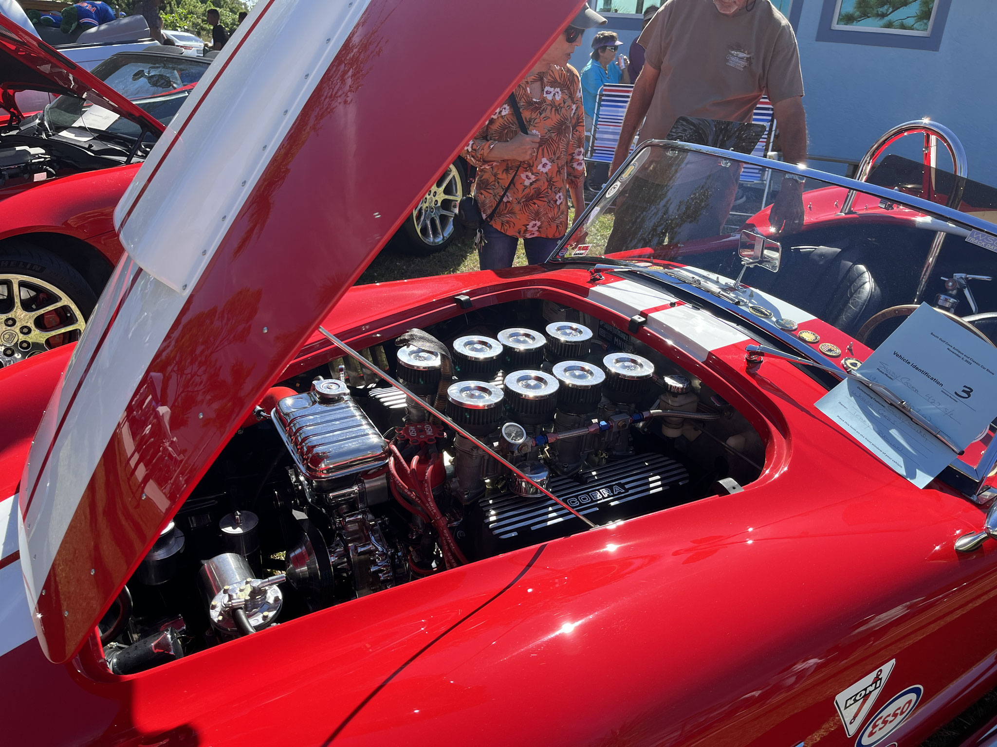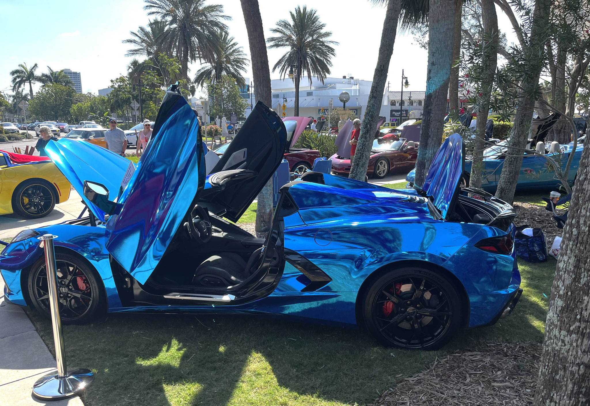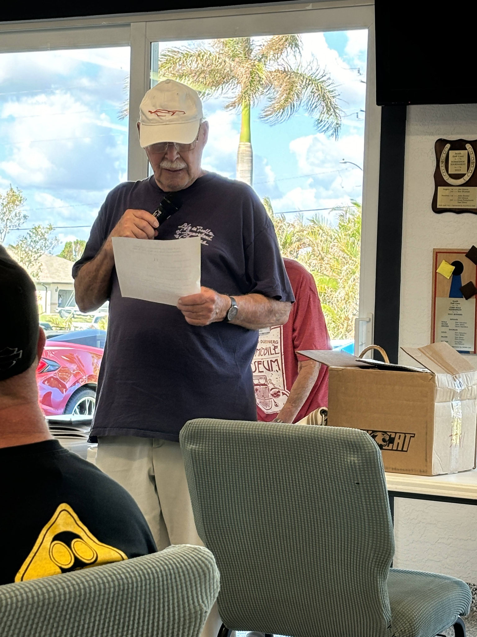 A bunch of us attended the South Gulf Cove Car Show hosted by our own Ed Kerschke and Elaine McNeill. It certainly was a gorgeous day for a car show. Many, many beautiful cars, old and new, which must have been tough for the judges. But… Mark and Gretchen Doran received a trophy for their beautiful 2023 Red Mist C8. Congratulations!!