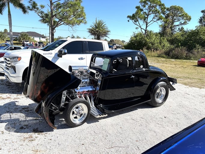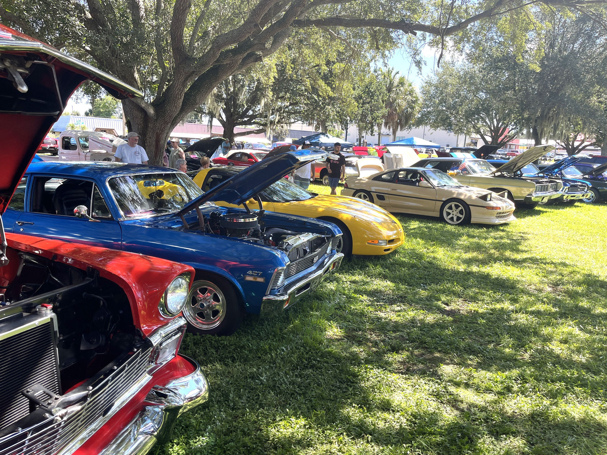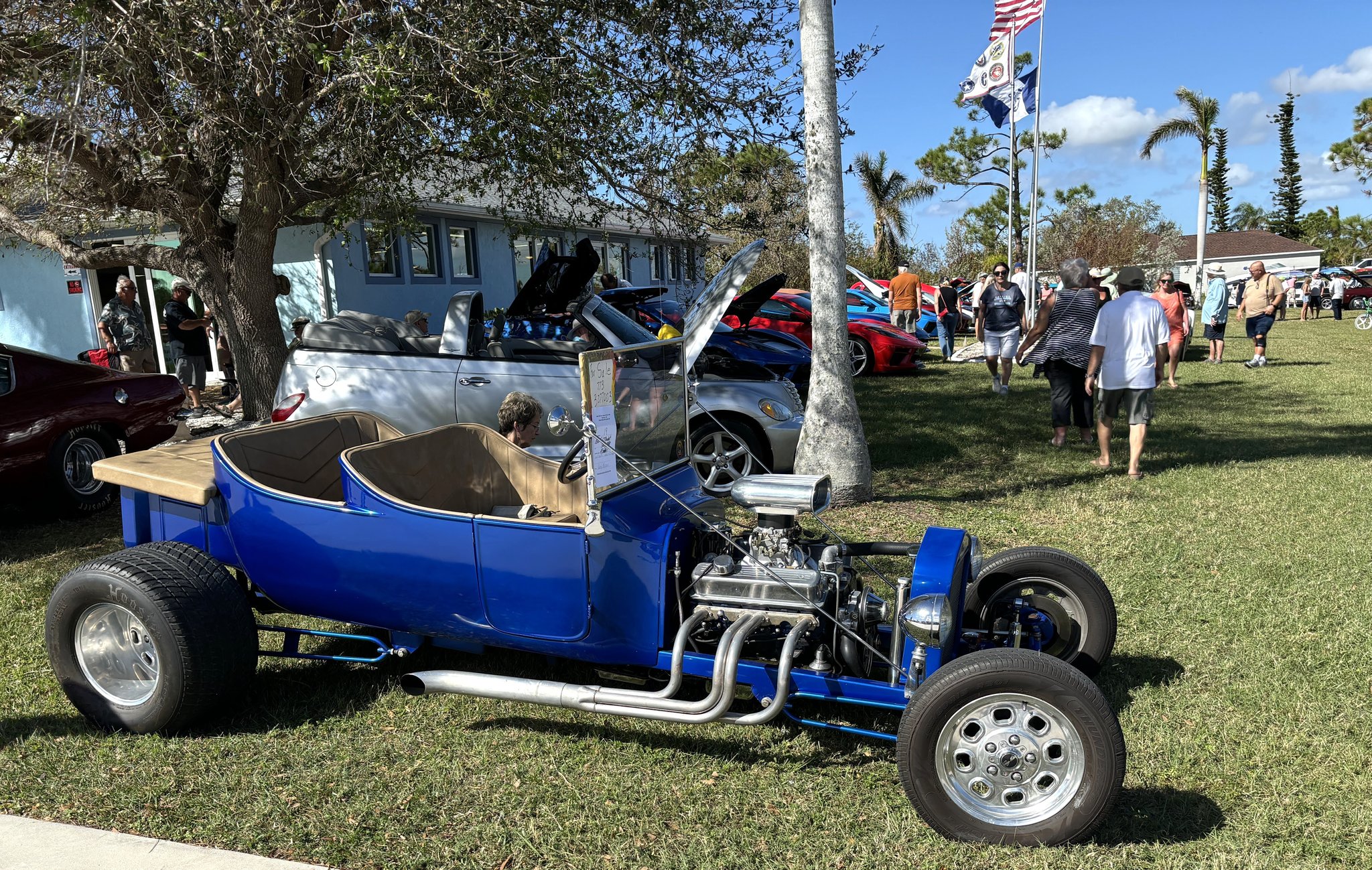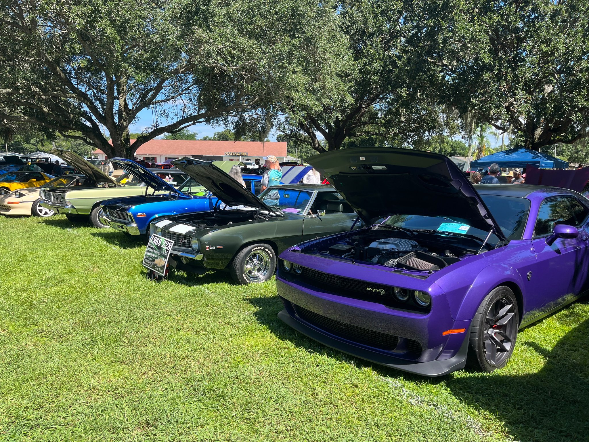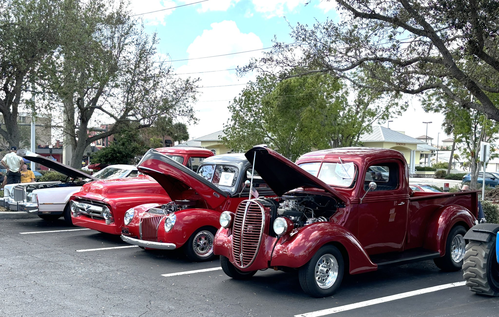 A bunch of us attended the South Gulf Cove Car Show hosted by our own Ed Kerschke and Elaine McNeill. It certainly was a gorgeous day for a car show. Many, many beautiful cars, old and new, which must have been tough for the judges. But… Mark and Gretchen Doran received a trophy for their beautiful 2023 Red Mist C8. Congratulations!!