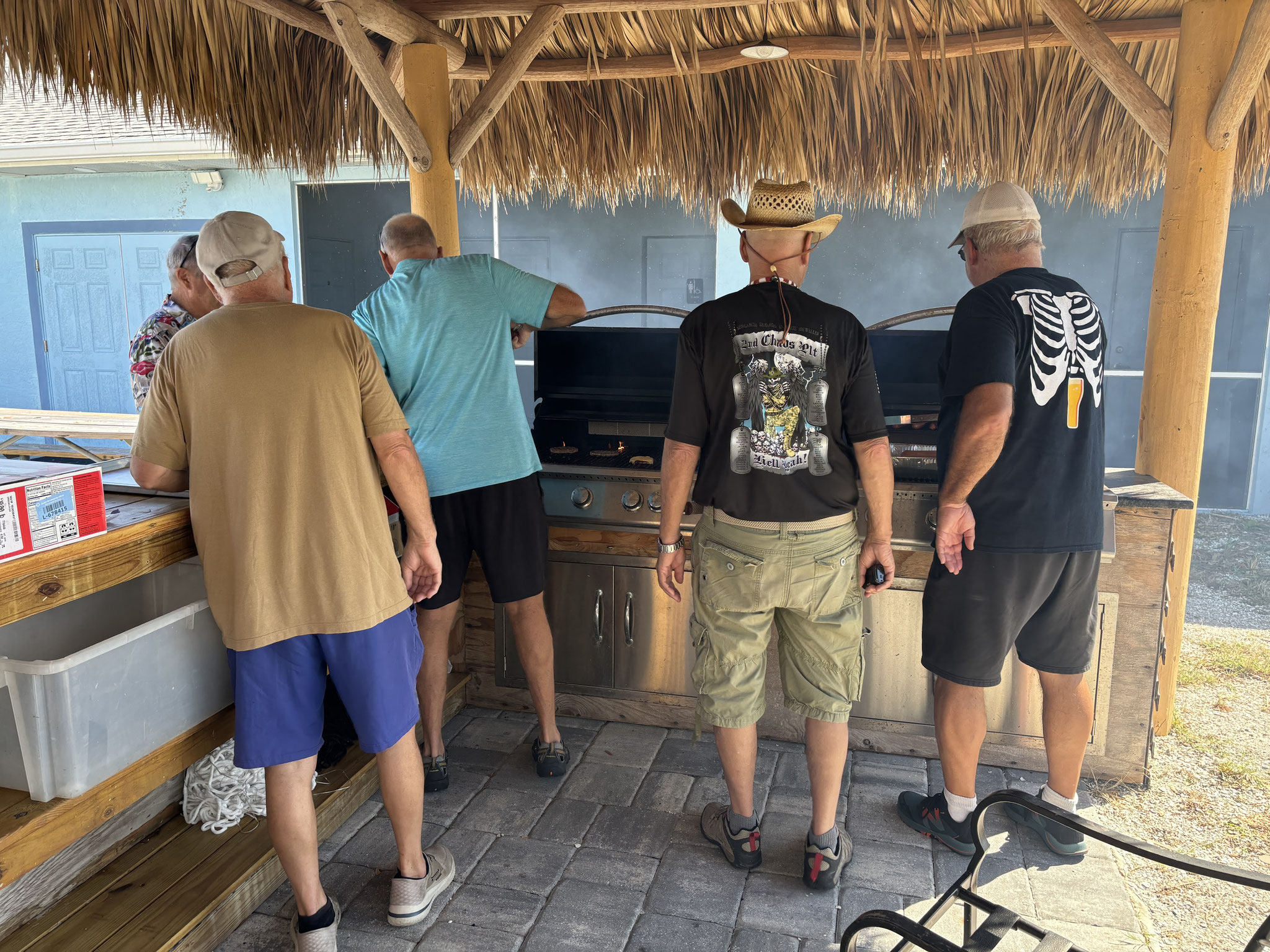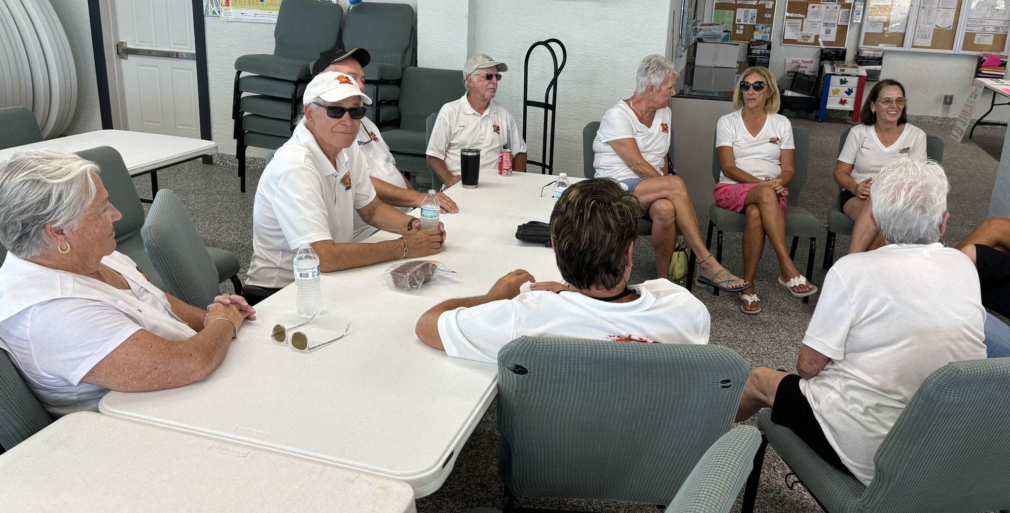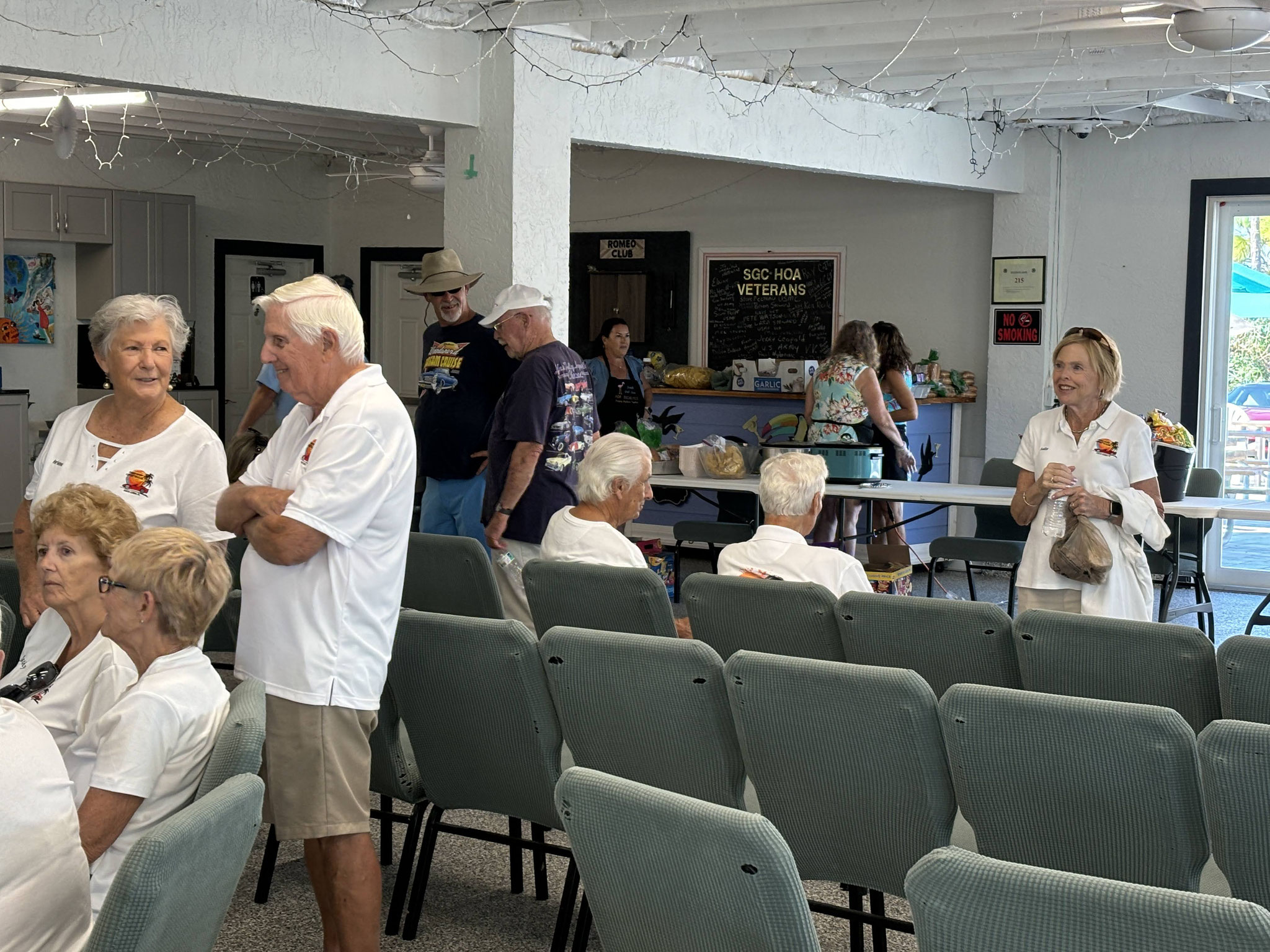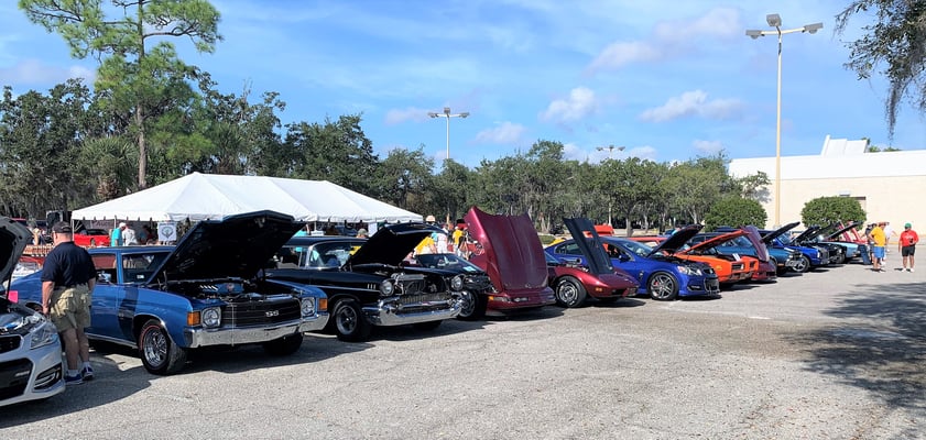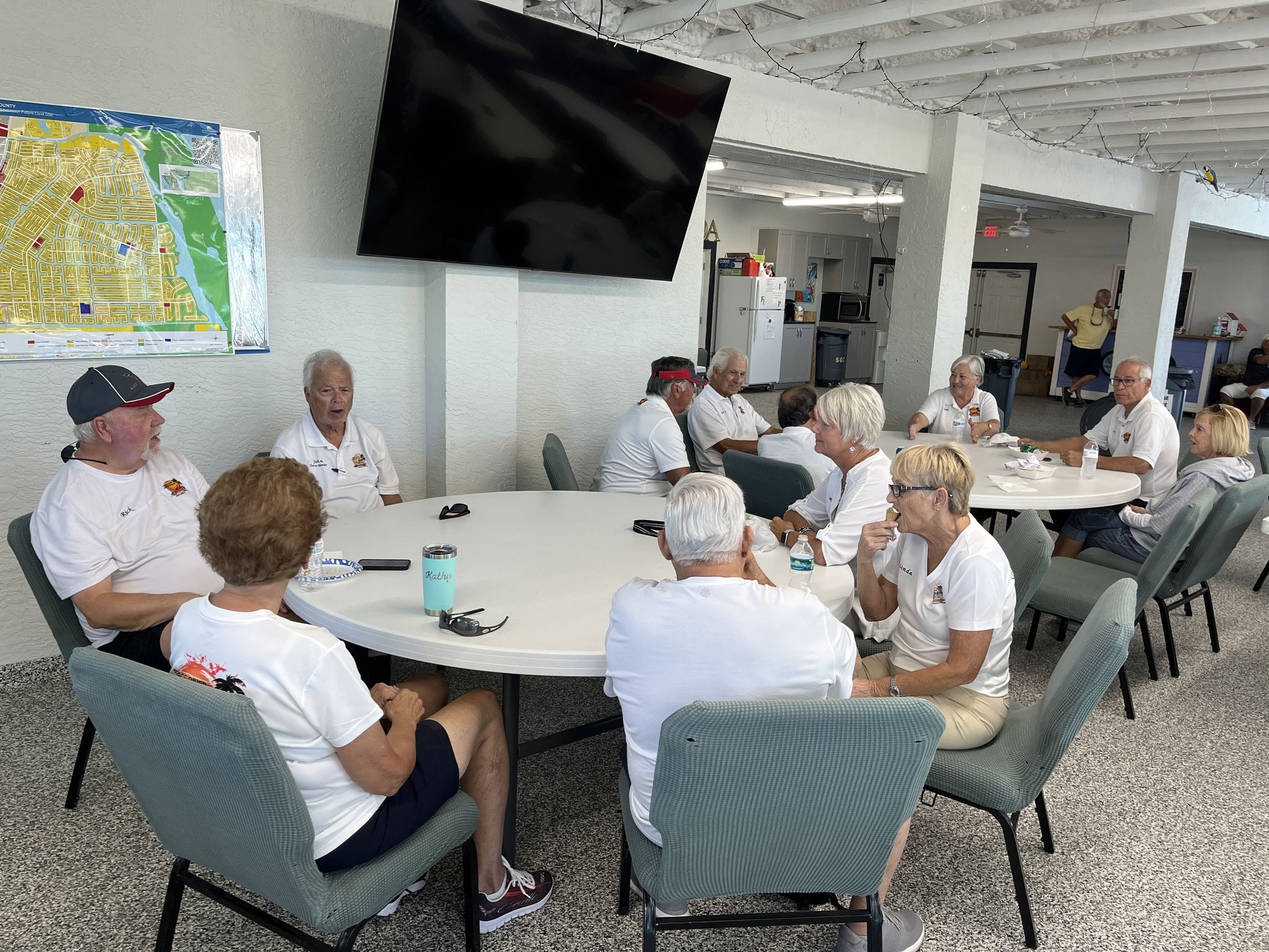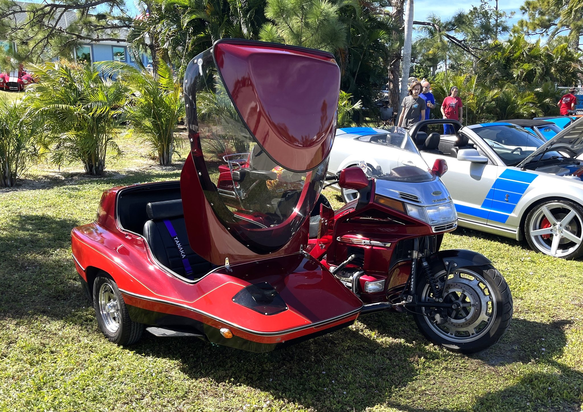 A bunch of us attended the South Gulf Cove Car Show hosted by our own Ed Kerschke and Elaine McNeill. It certainly was a gorgeous day for a car show. Many, many beautiful cars, old and new, which must have been tough for the judges. But… Mark and Gretchen Doran received a trophy for their beautiful 2023 Red Mist C8. Congratulations!!