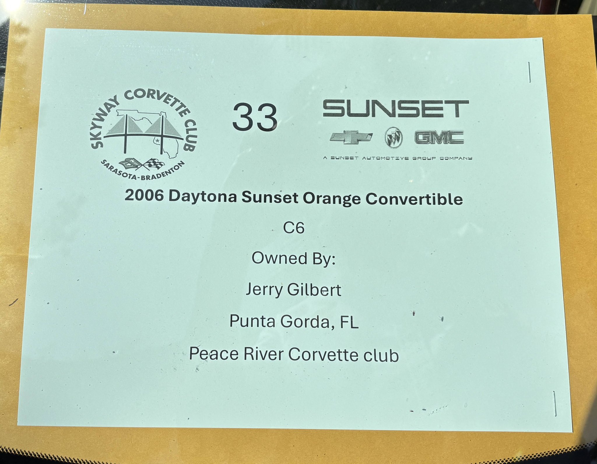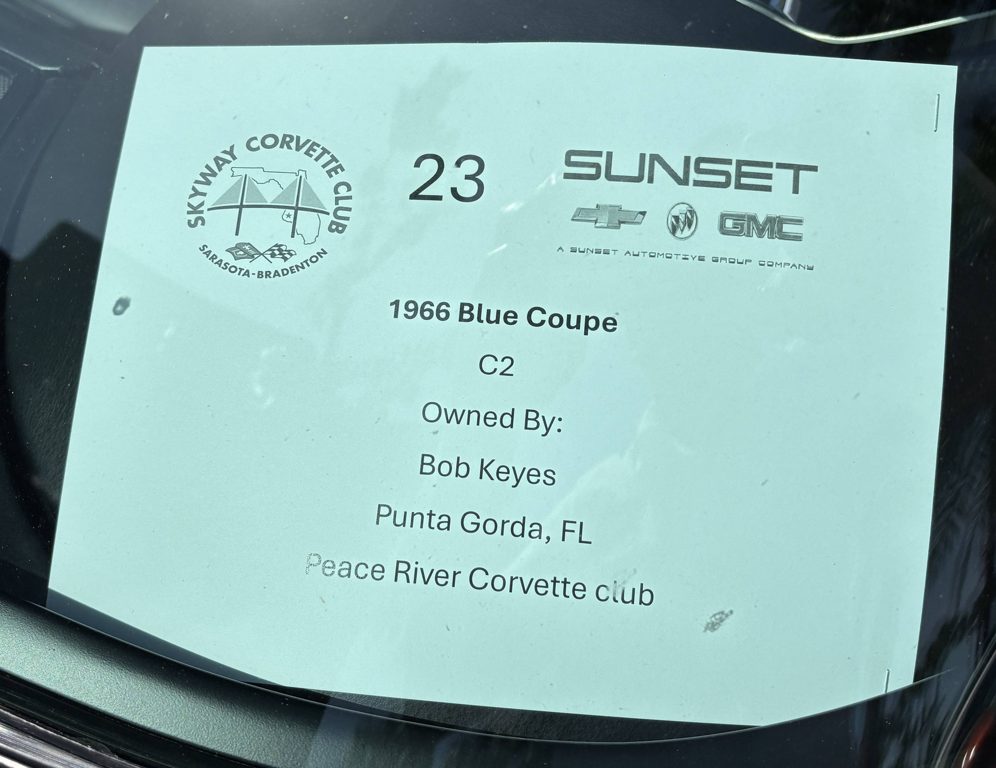 It was a good day for the Peace River Corvette Club as everyone who entered the Show from our Club won a Trophy/Plaque! Congratulations to Bill Wannall, Diego Betancourt, my wife Helen, and yours truly.