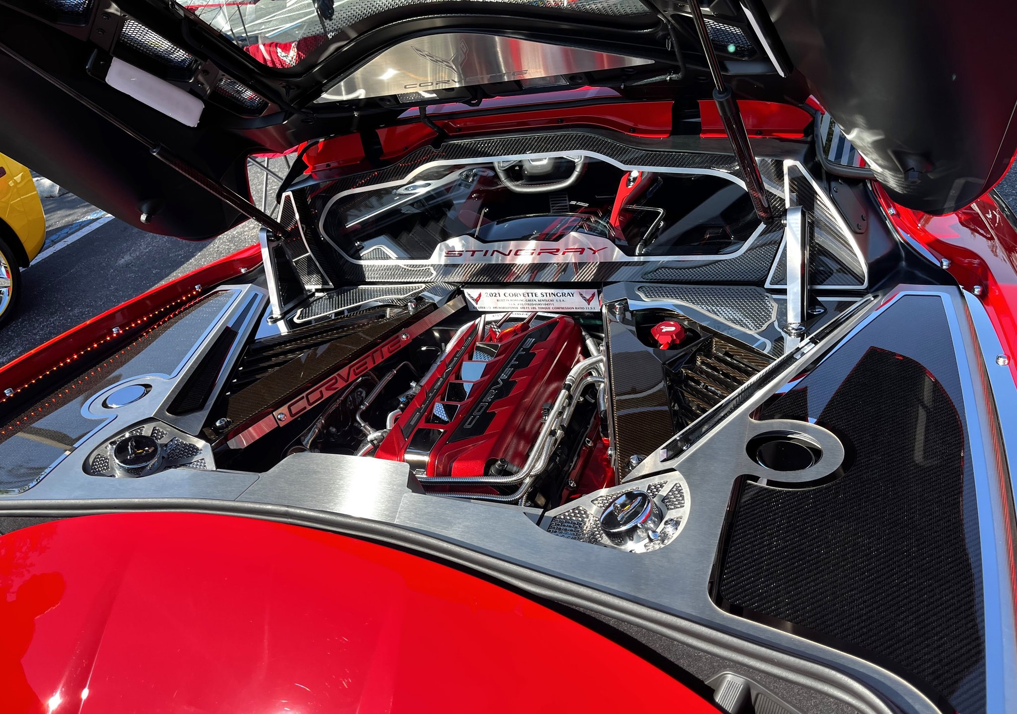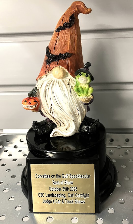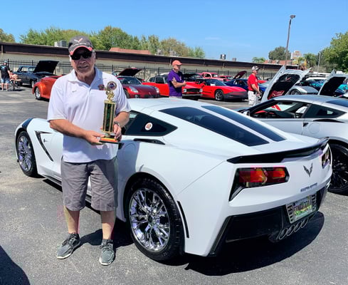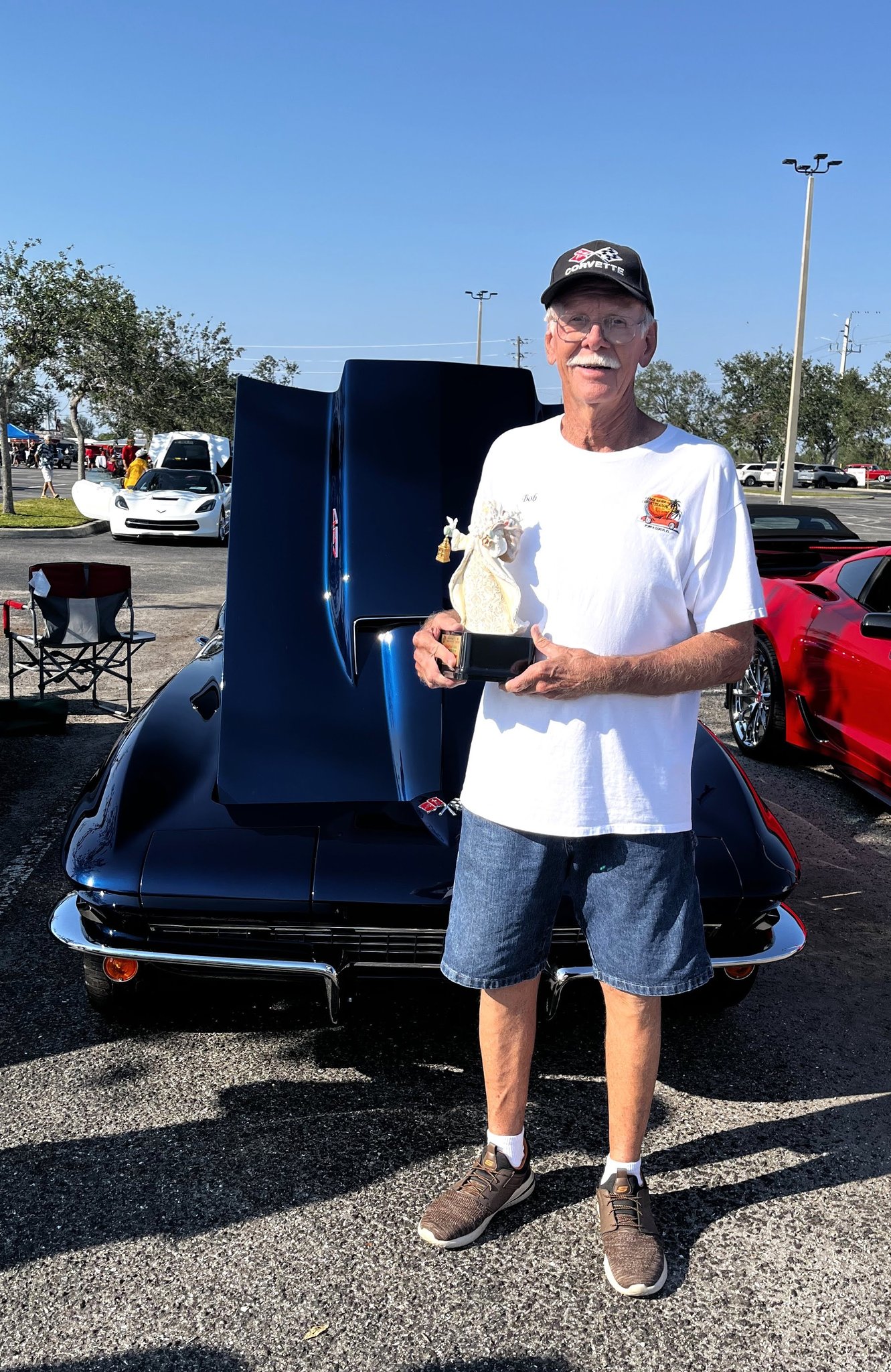Congratulations to Bob and Helen Keyes who received a trophy for their fantastic blue ’66 restomod Vette. Also, to Jerry Suminski who received a trophy for his super clean stock white C8.