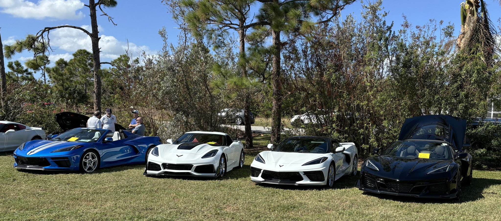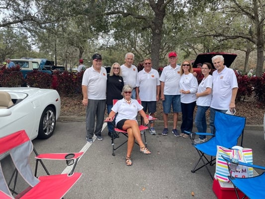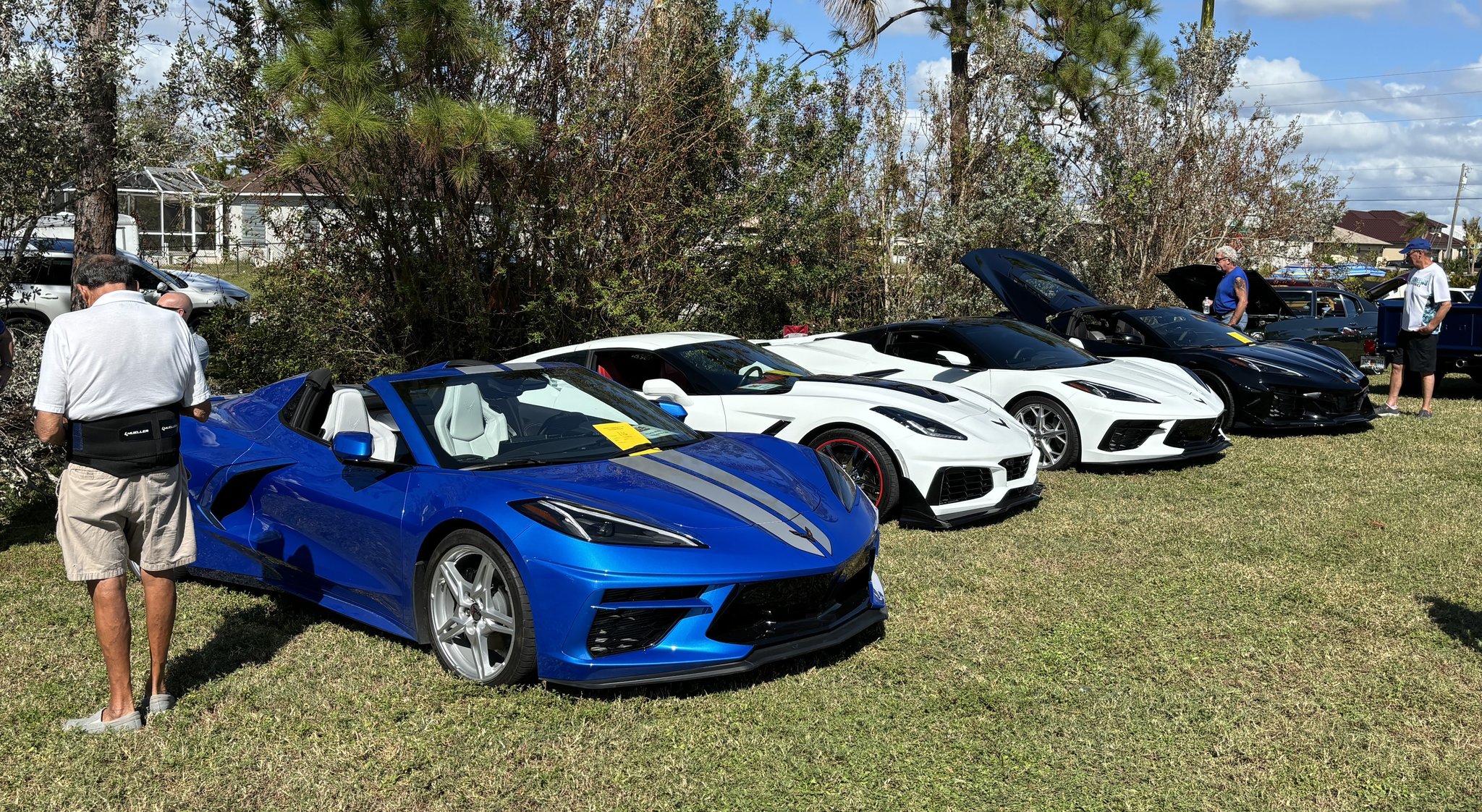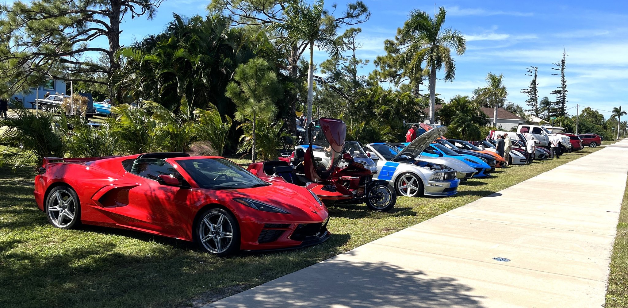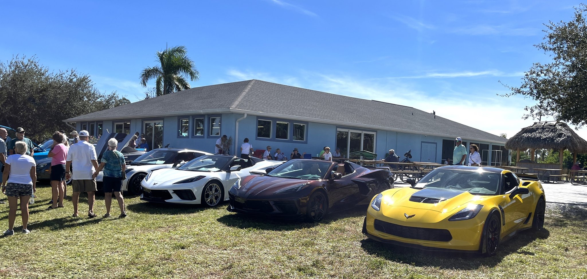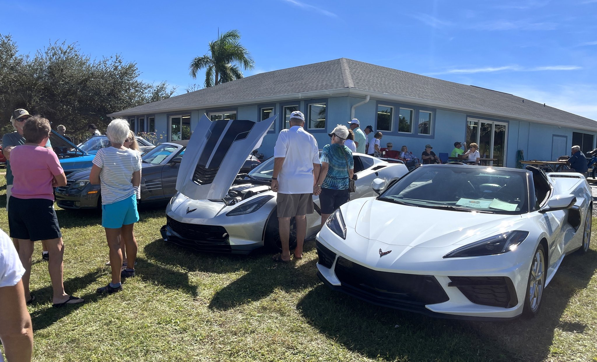 Our PRCC Corvettes caravaned to the South Gulf Cove HOA pavilion where we had 14 cars in the show. Congratulations to Jim and Mary for their blue C8 convertible that took second place in the new car category!
