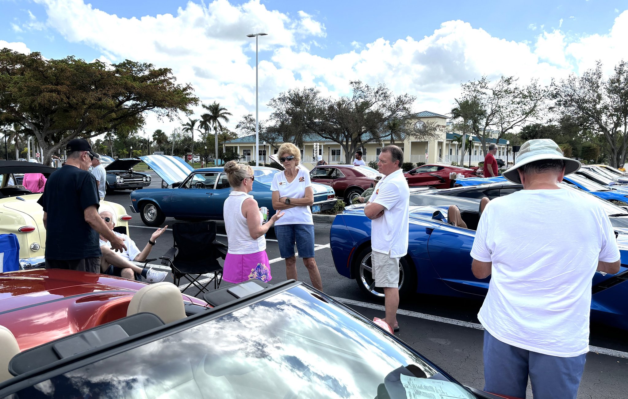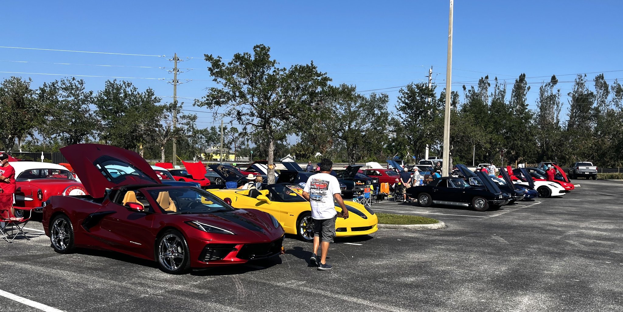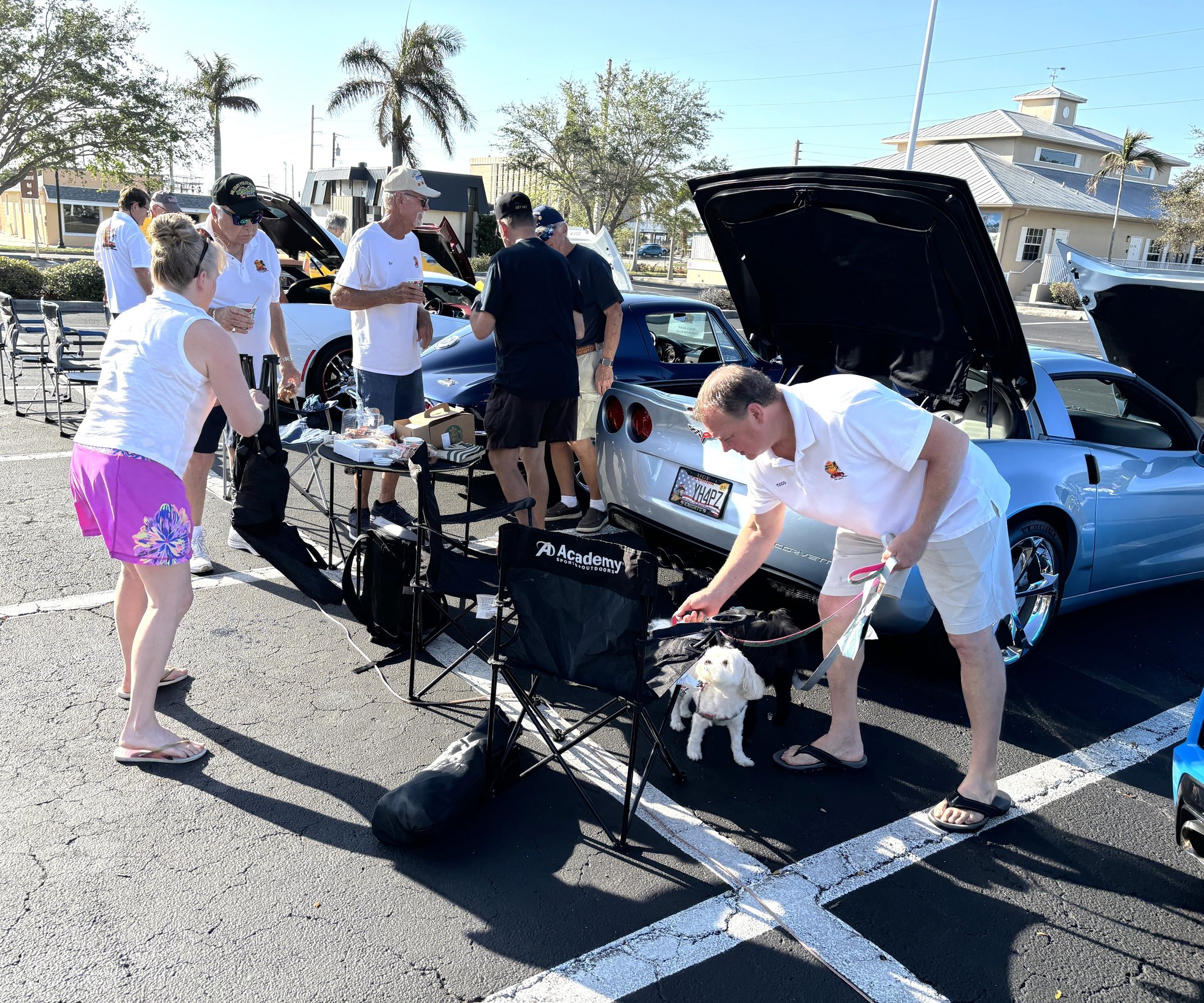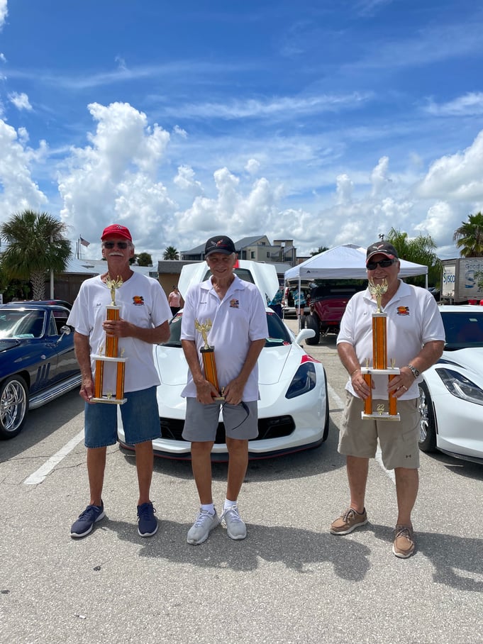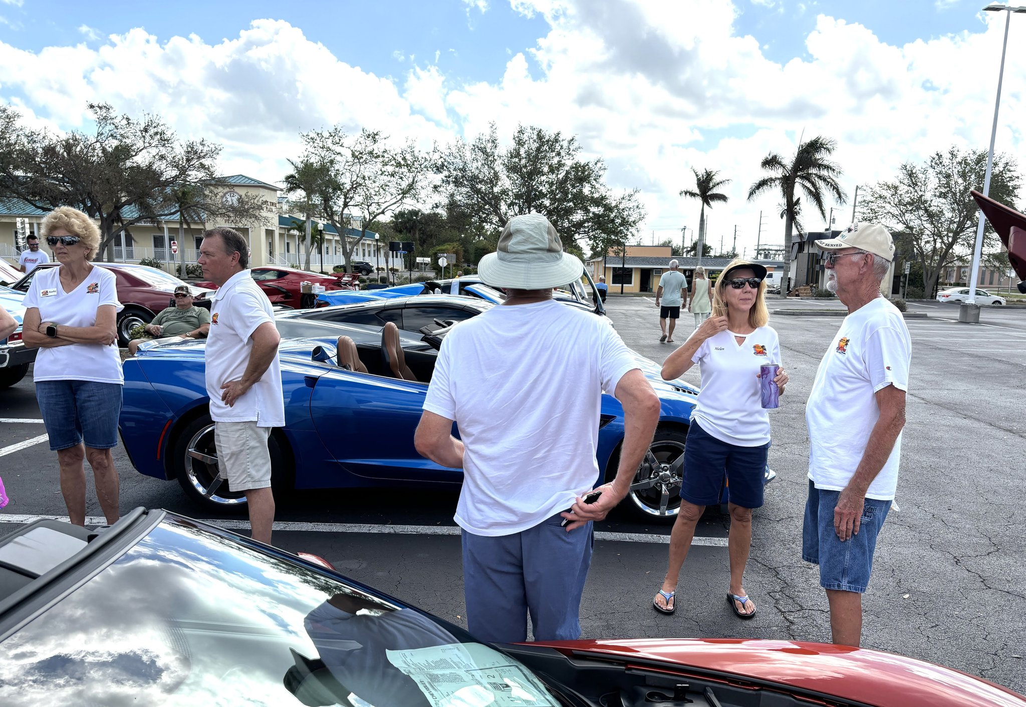 Our PRCC Corvettes caravaned to the South Gulf Cove HOA pavilion where we had 14 cars in the show. Congratulations to Jim and Mary for their blue C8 convertible that took second place in the new car category!