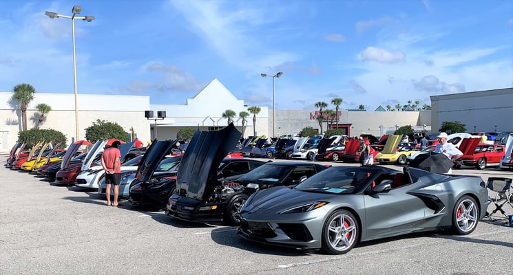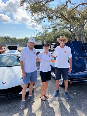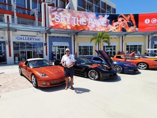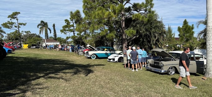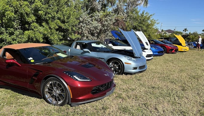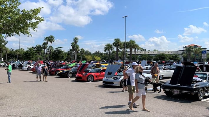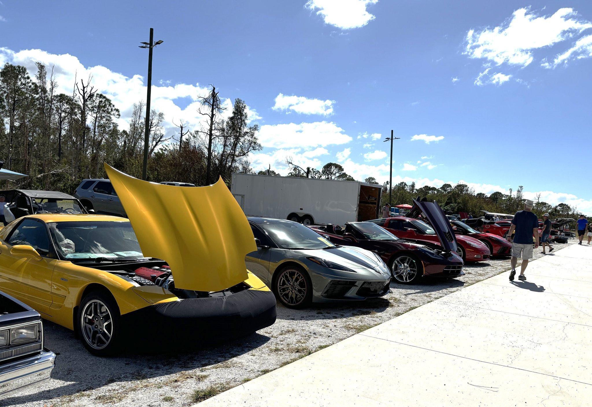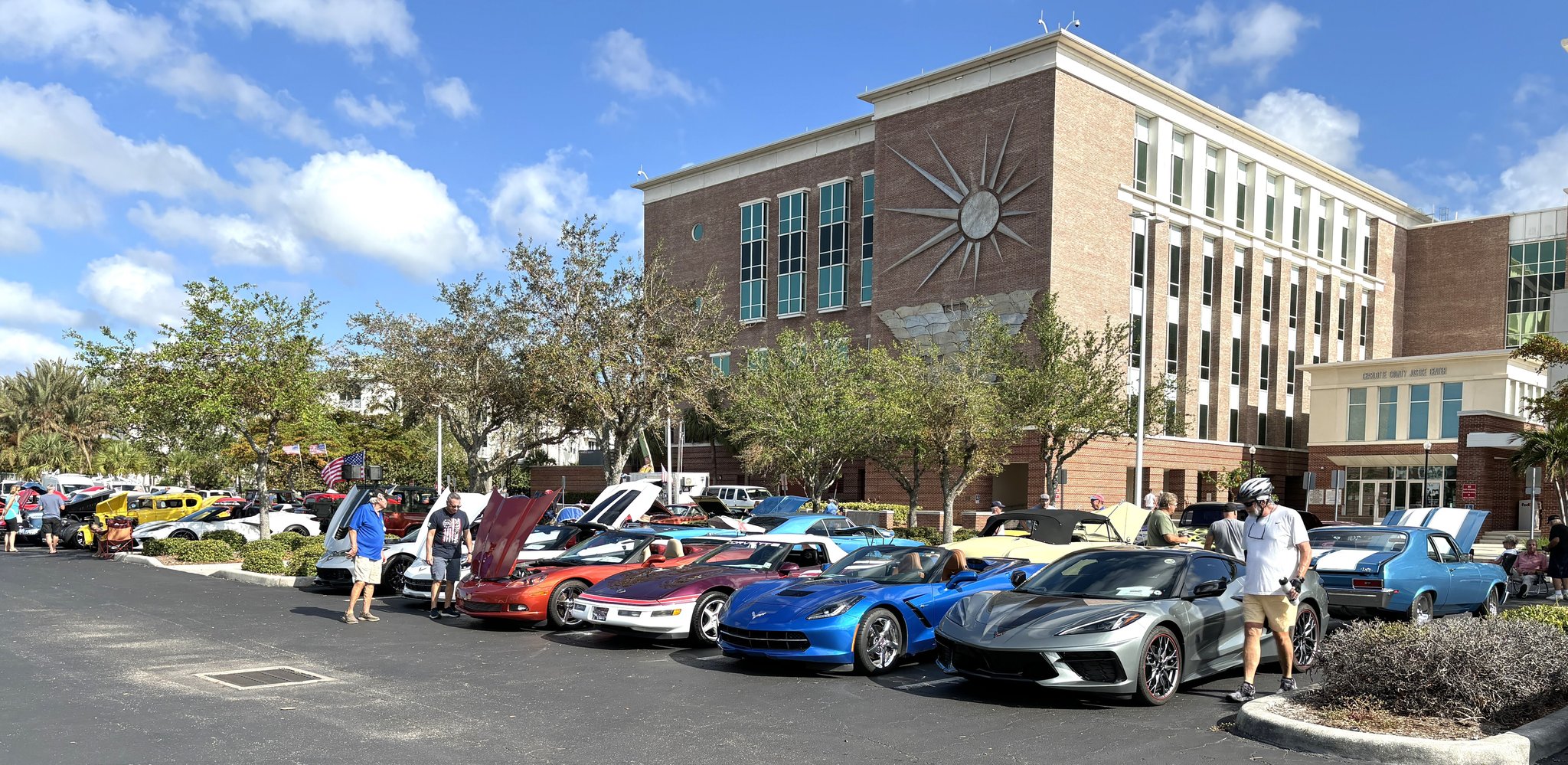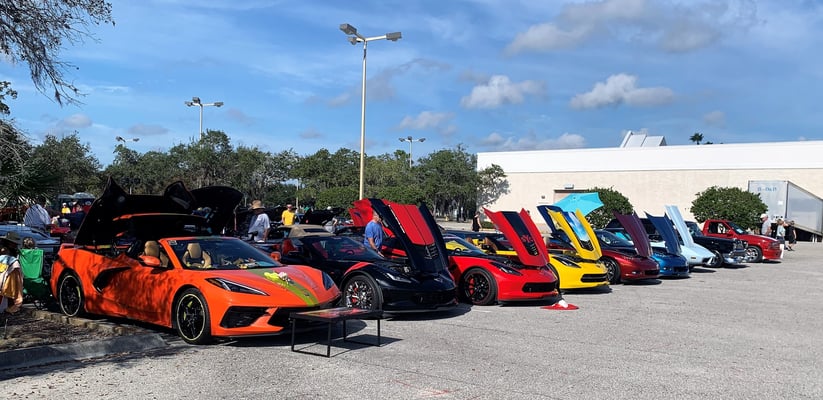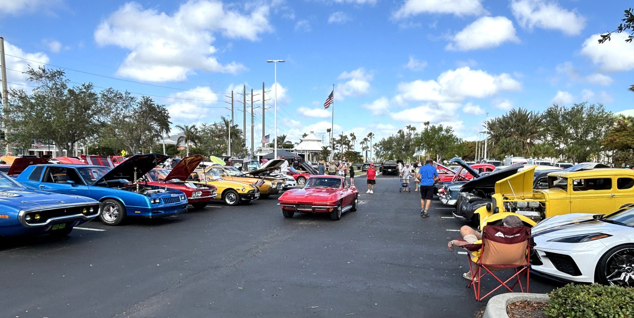 Our PRCC Corvettes caravaned to the South Gulf Cove HOA pavilion where we had 14 cars in the show. Congratulations to Jim and Mary for their blue C8 convertible that took second place in the new car category!