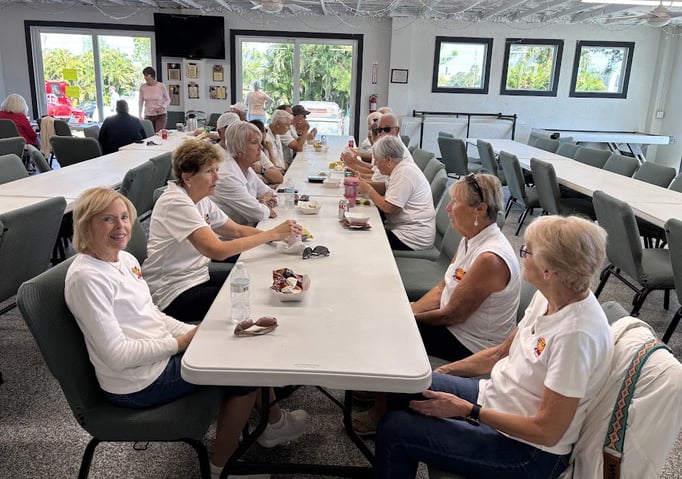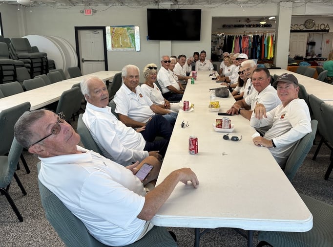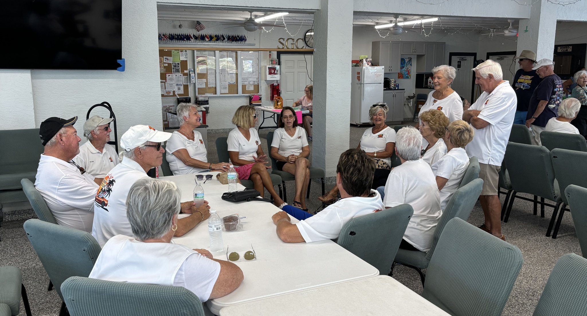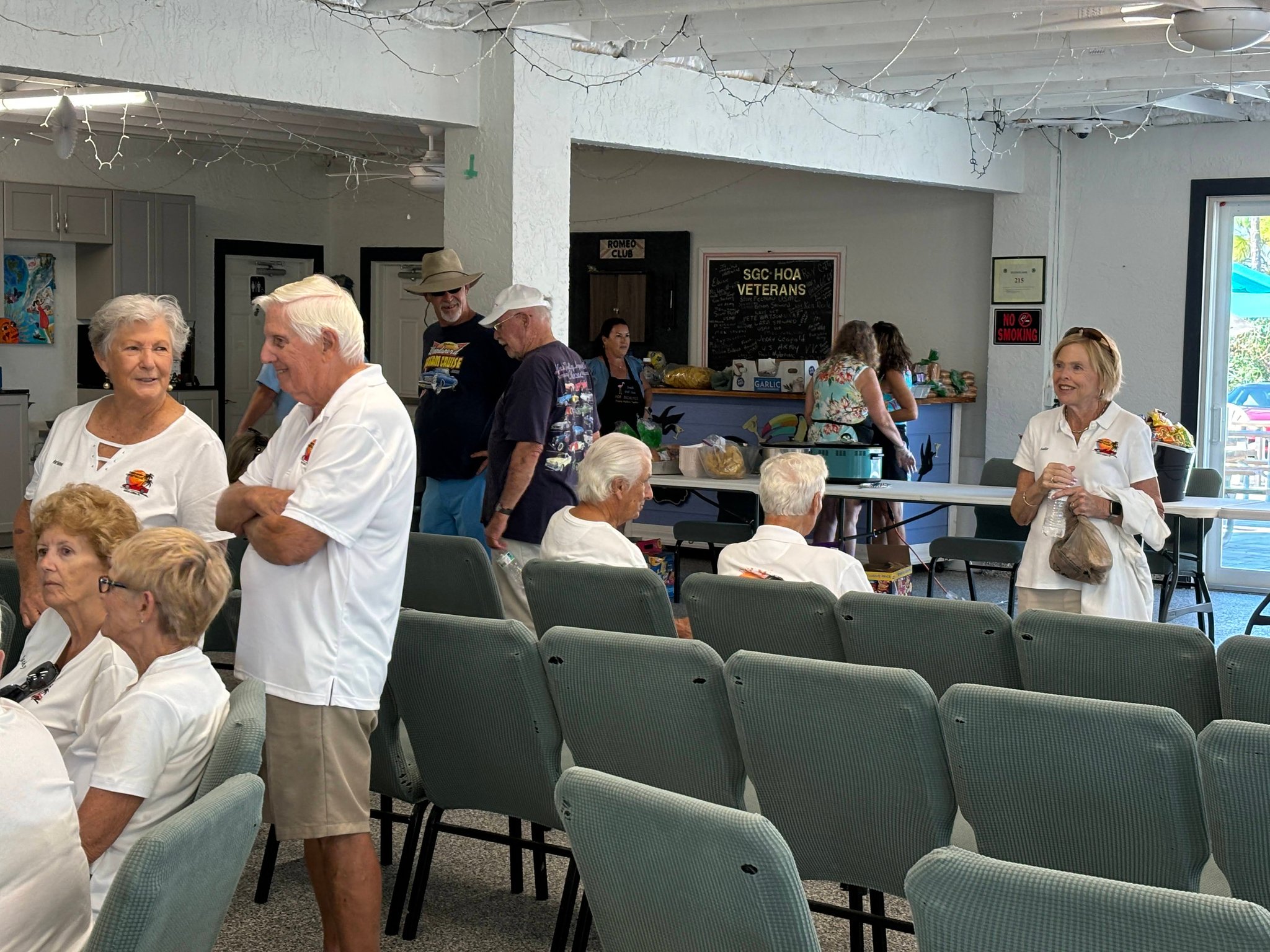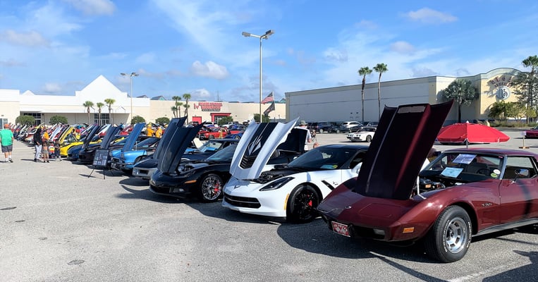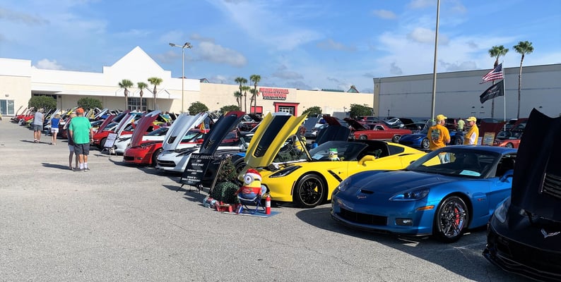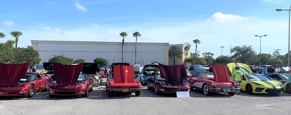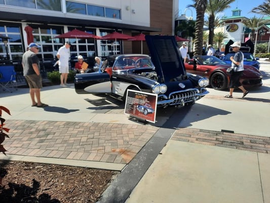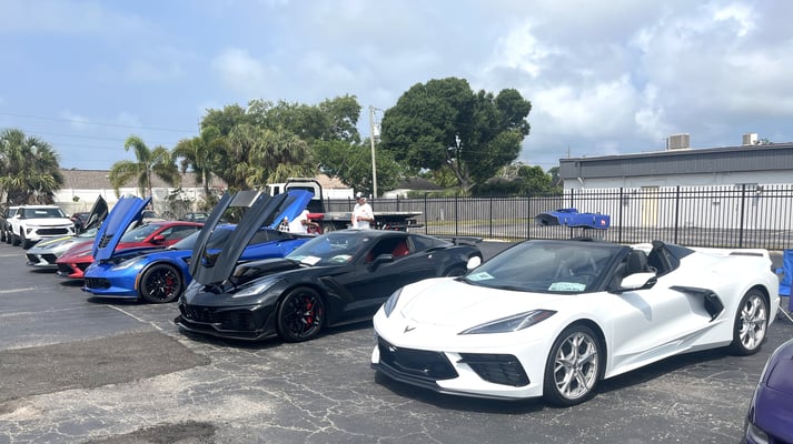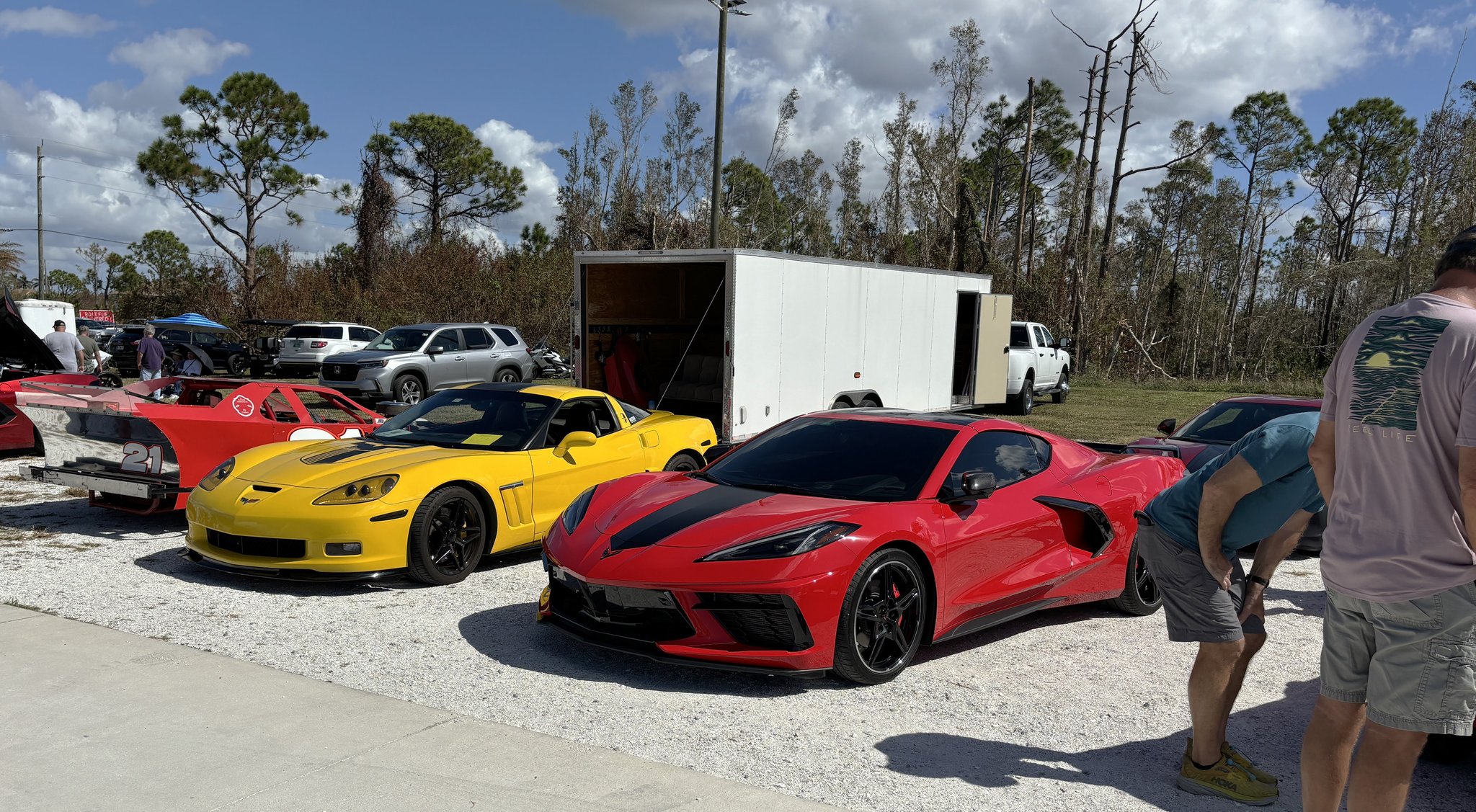 Our PRCC Corvettes caravaned to the South Gulf Cove HOA pavilion where we had 14 cars in the show. Congratulations to Jim and Mary for their blue C8 convertible that took second place in the new car category!