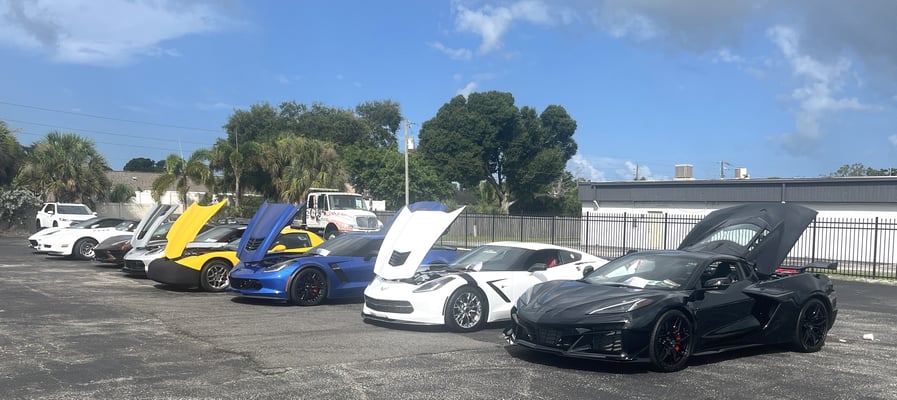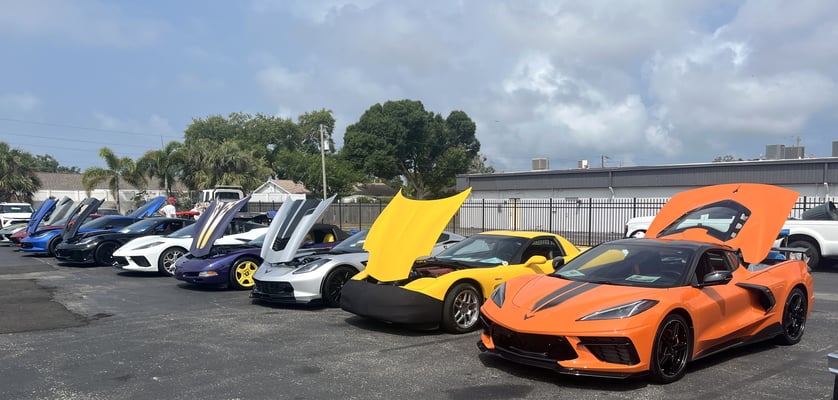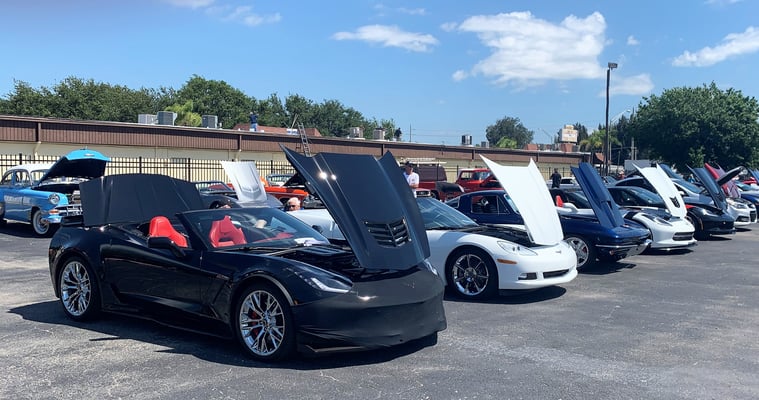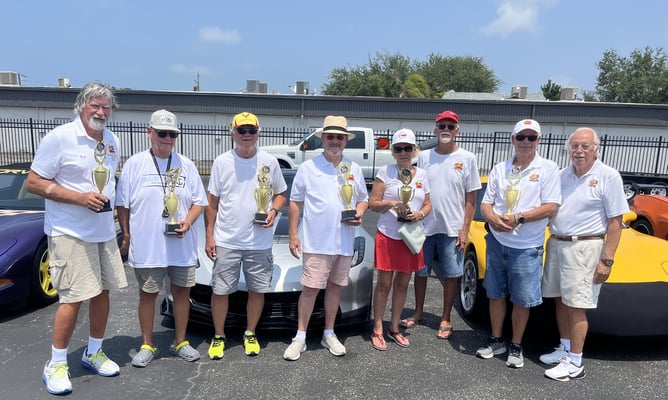 PRCC walked away with 5 trophies. The winners were Susanne and Lin Beverly’s C8 orange/black coupe, Terry Tracy’s Indy 500 Pace Car C5, Lou Rivera’s yellow supercharged C5, Paul Remillard’s black C7 ZR1, and Diego Betancourt's supercharged C7.