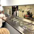 We then began our tour through their kitchen and visits through the building to the food pantry where Israel explained the process for food distribution and their needs to fulfill community needs. The tour concluded in their church where we also heard from Laura Weller about SA giving program.