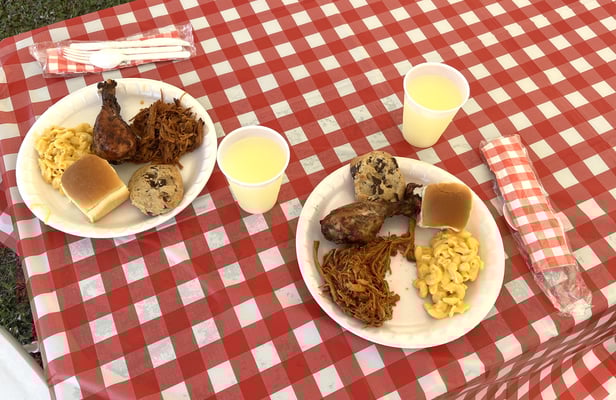 A very tasty lunch cooked by staff and volunteers consisted of pulled pork, Jamaican jerk rubbed chicken legs, cheesy mac & cheese, salad, and cookies and brownies for dessert. Lunch was served by volunteers and several of the boys.